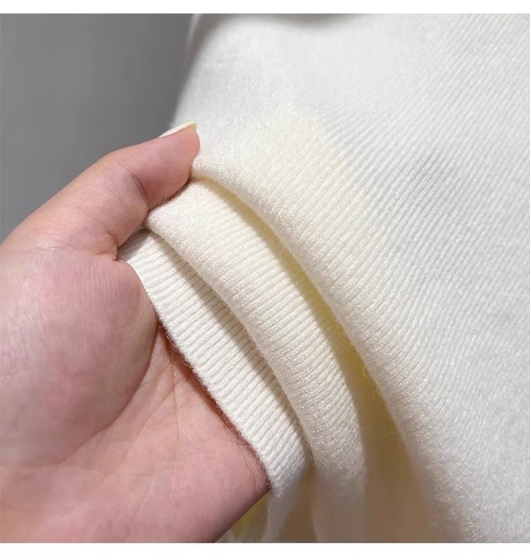 2025 봄과 가을 반 높이 칼라 화이트 니트베이스 셔츠 여성용 슬림 핏 소프트 왁스 슬림 핏 우아한 미드 넥 스웨터 트렌디