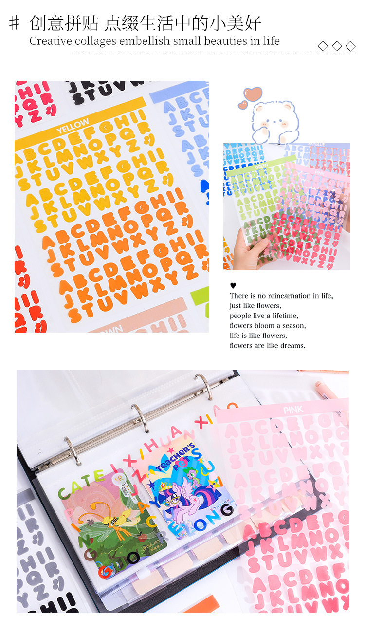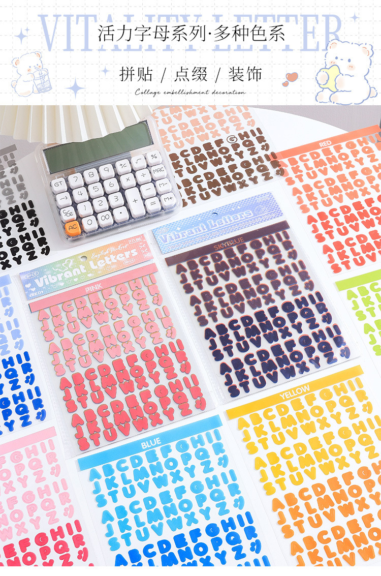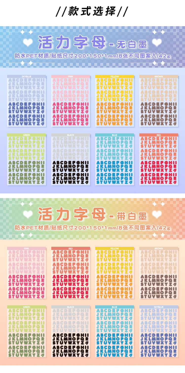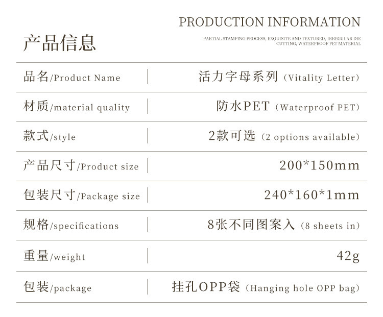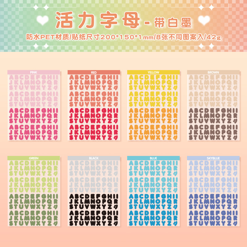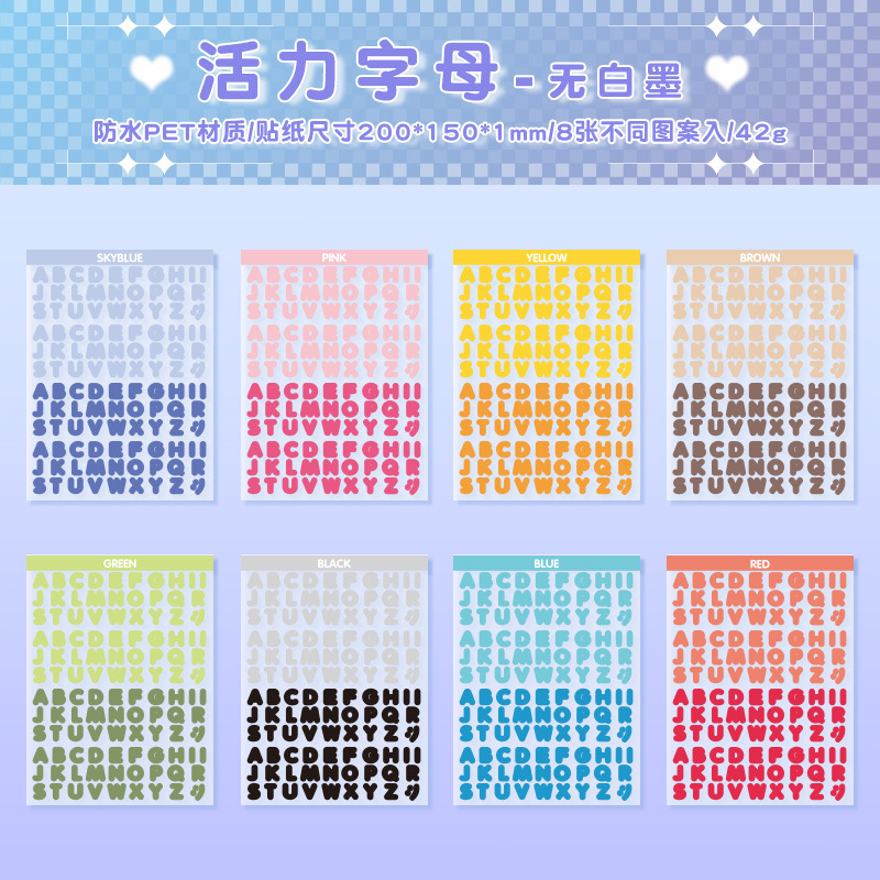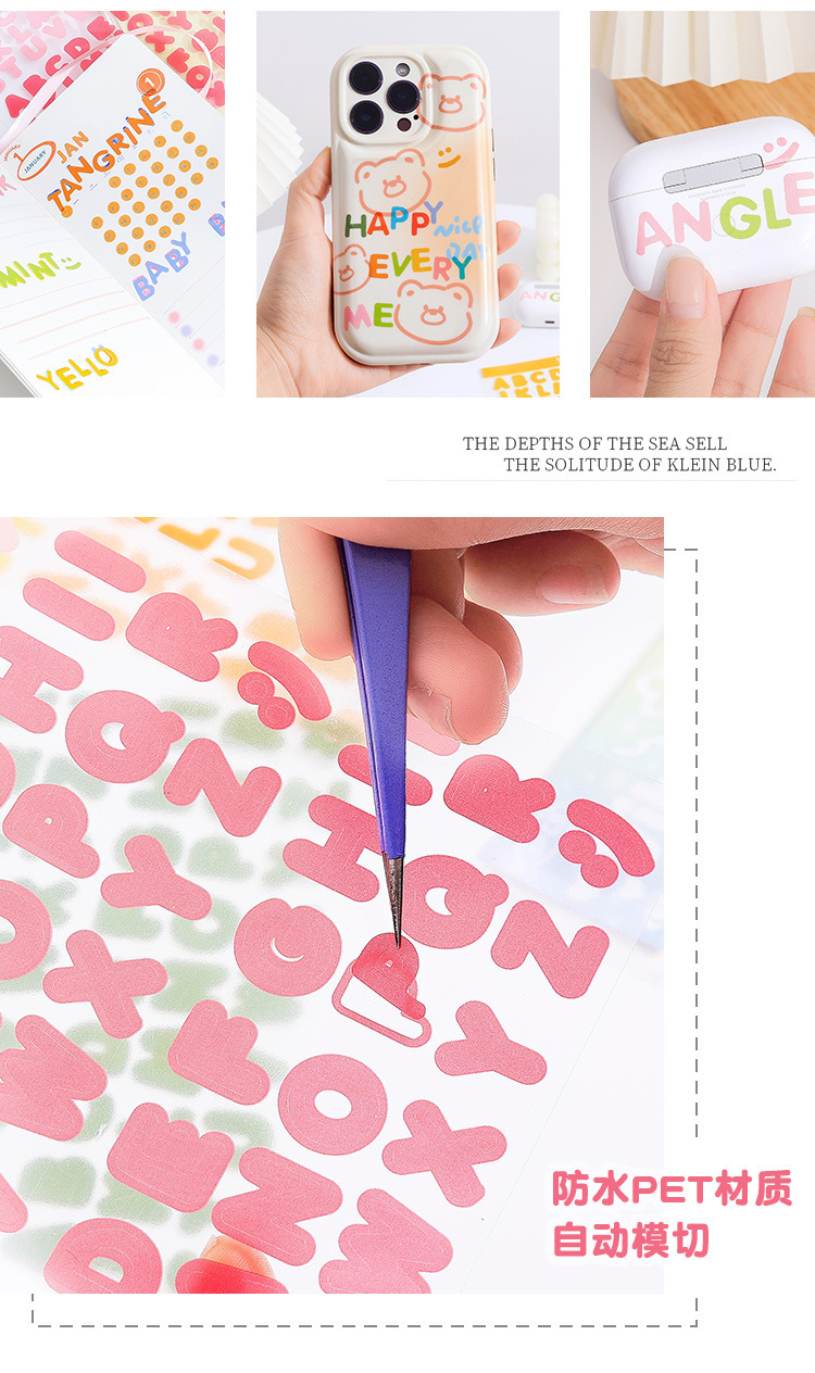 활력 편지 방수 애완 동물 컷 필름 손 계정 스티커 국경 영어 손 계정 소재 스티커 창조적 인 스티커 스티커