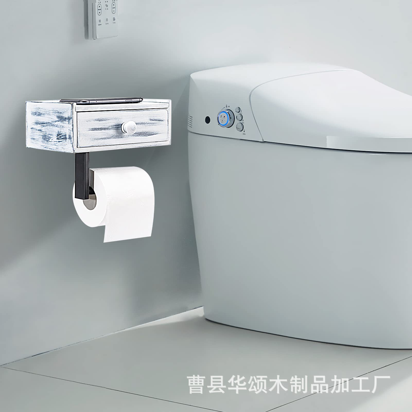 나무 롤 티슈 홀더 벽걸이 형 화장실 화장실 홀더 서랍 저장 상자 화장실 선반