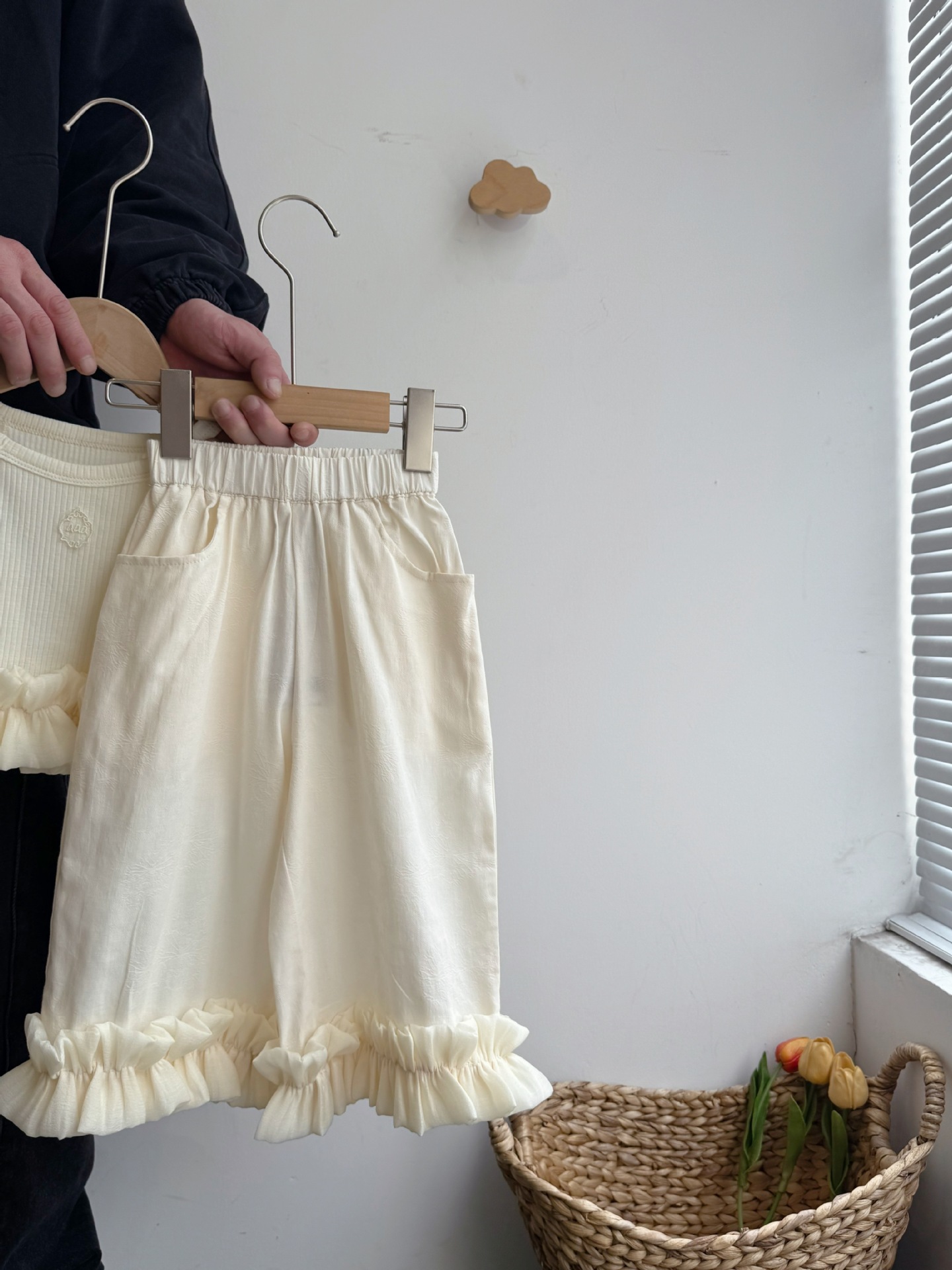 2025秋季中大女童拼接蕾丝花边牛仔裤中裤长裤设计感喇叭裤阔腿裤