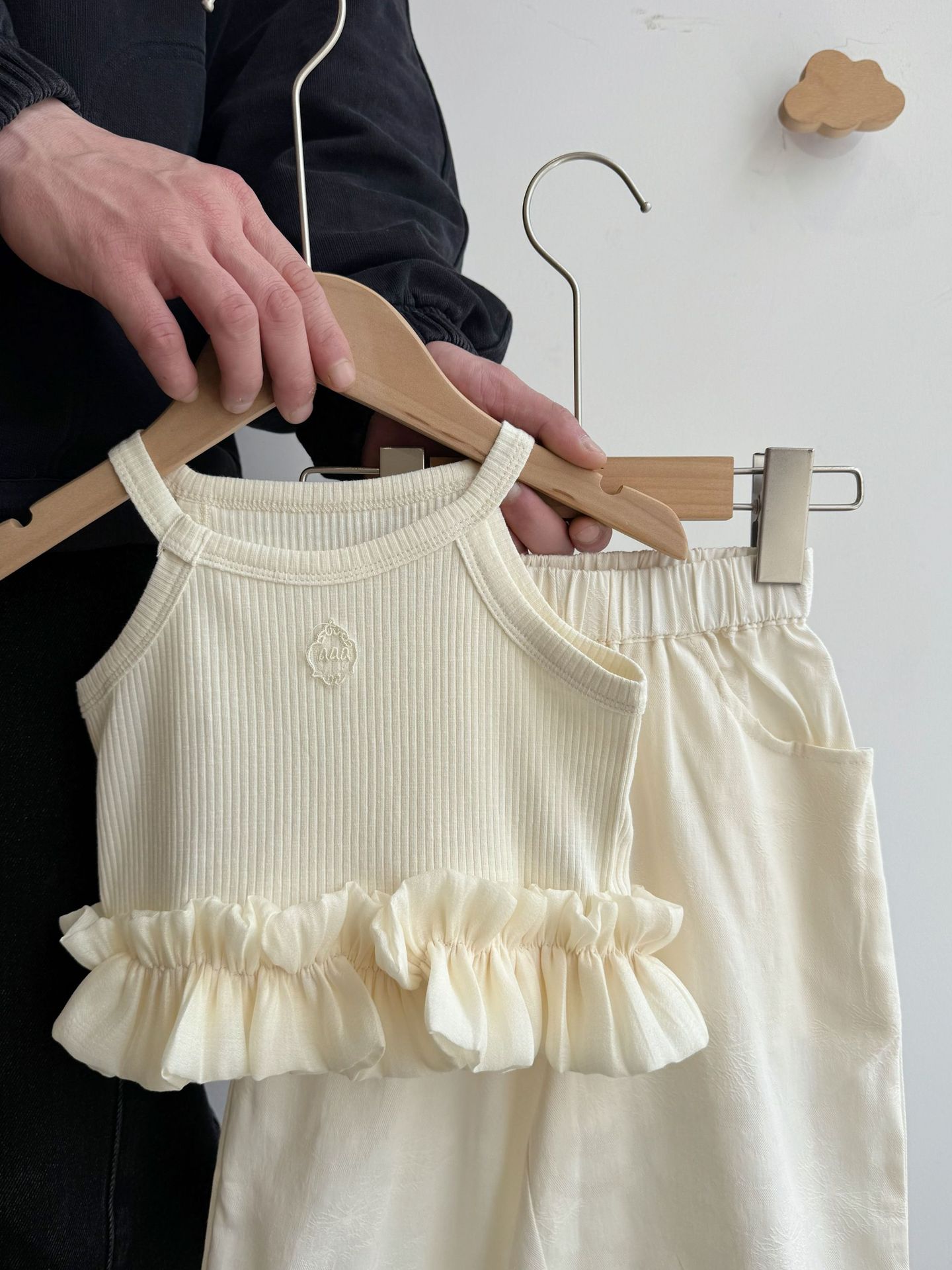 여자 정장 여름 옷 2025 새로운 프랑스 스타일 미색 조끼 탑 꽃 스타일 여름 스타일 투피스 세트