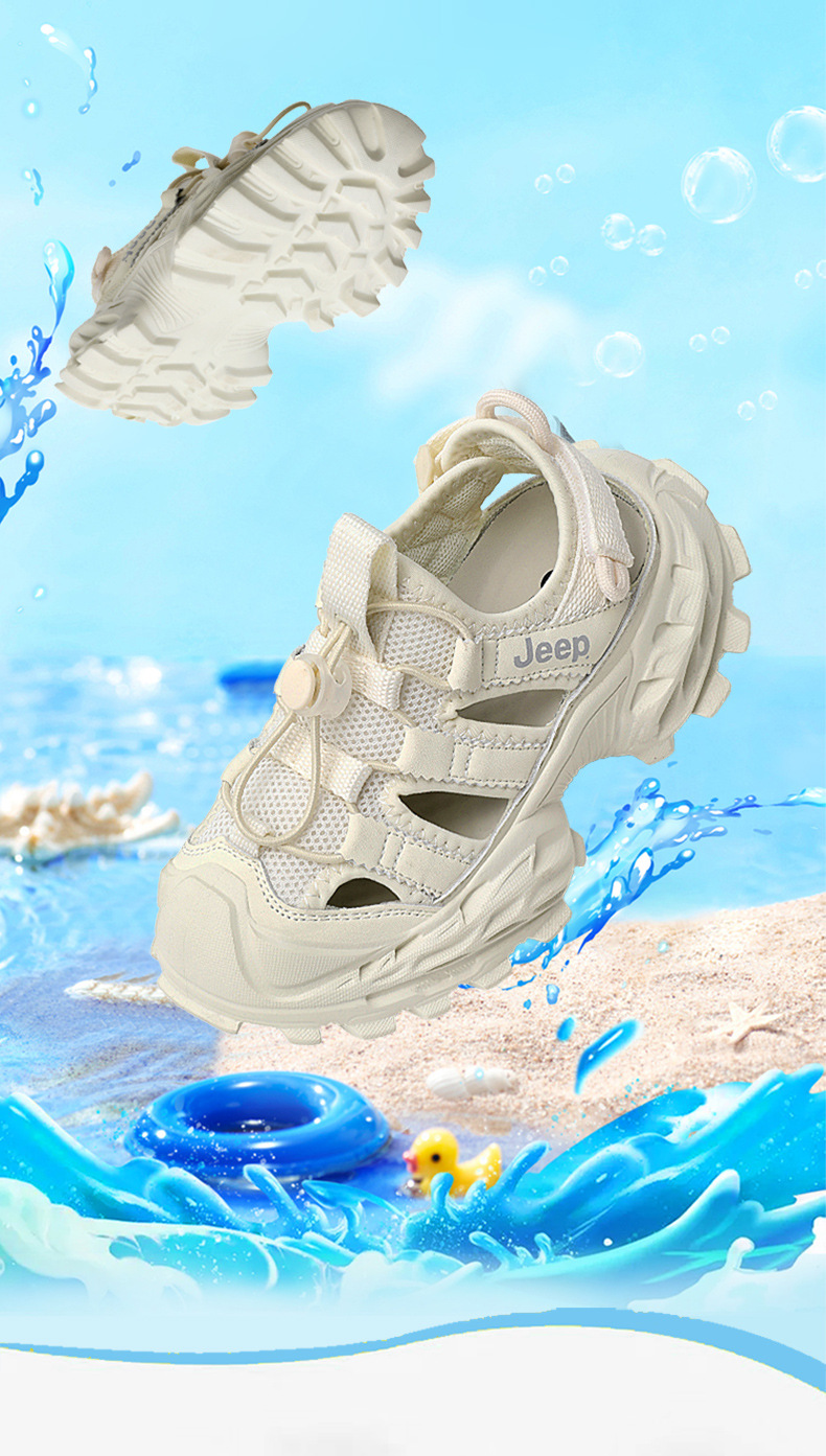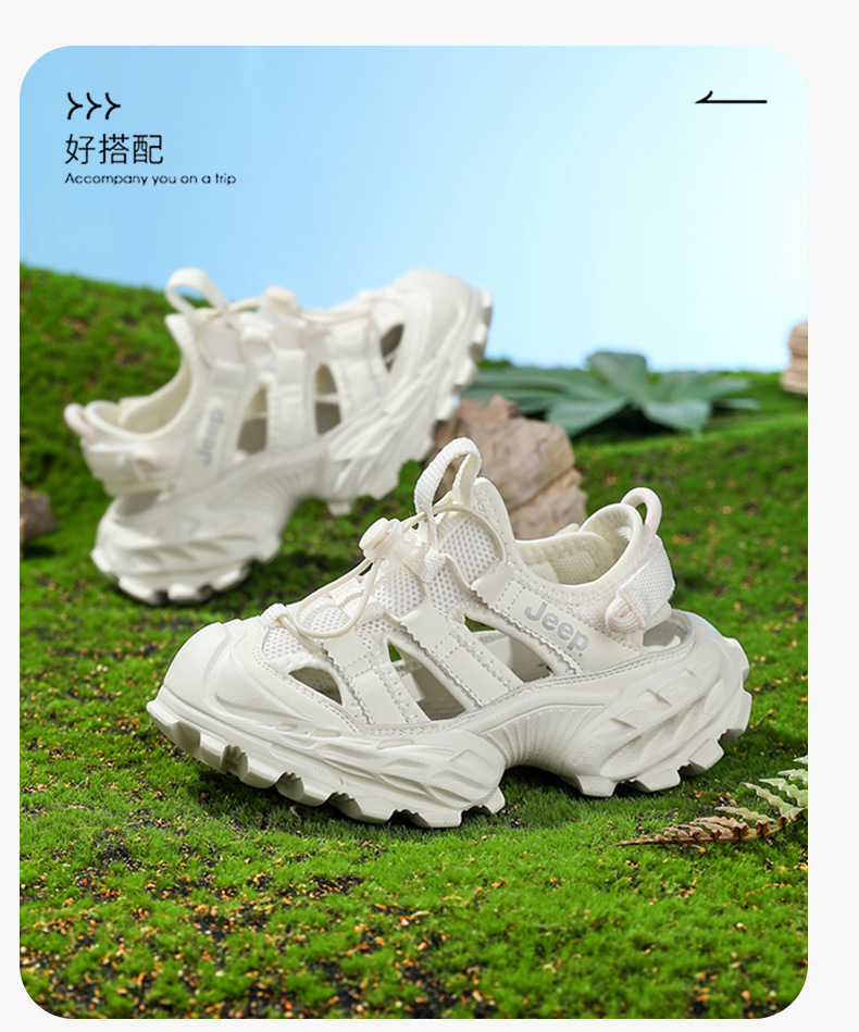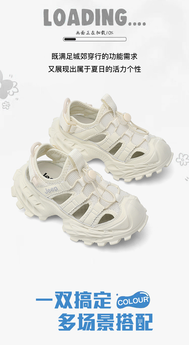 지프 어린이 신발 어린이 스포츠 샌들 2025 새로운 흰색 신발 통기성 소프트 단독 비치 신발 소년 소녀