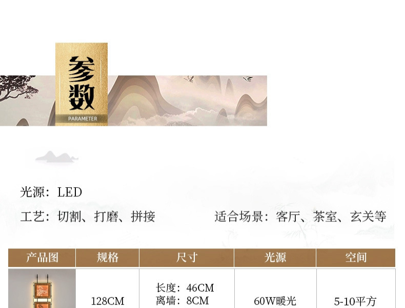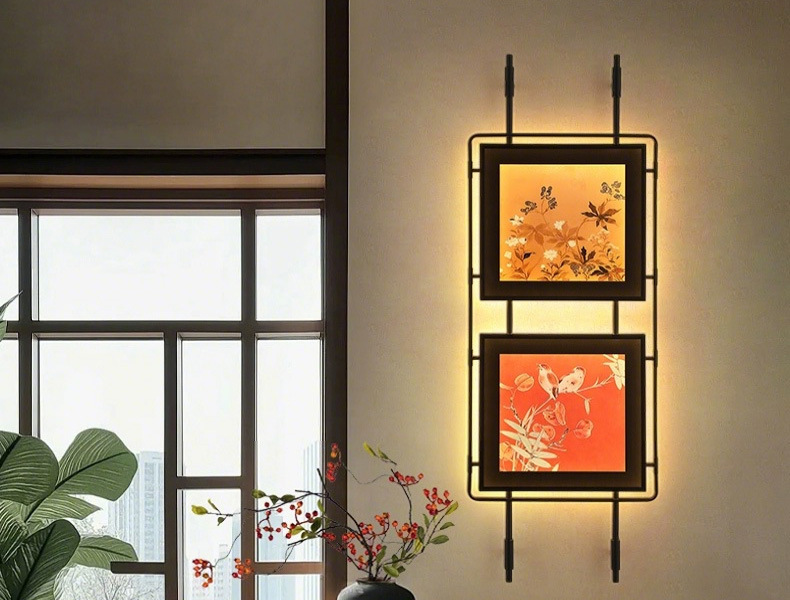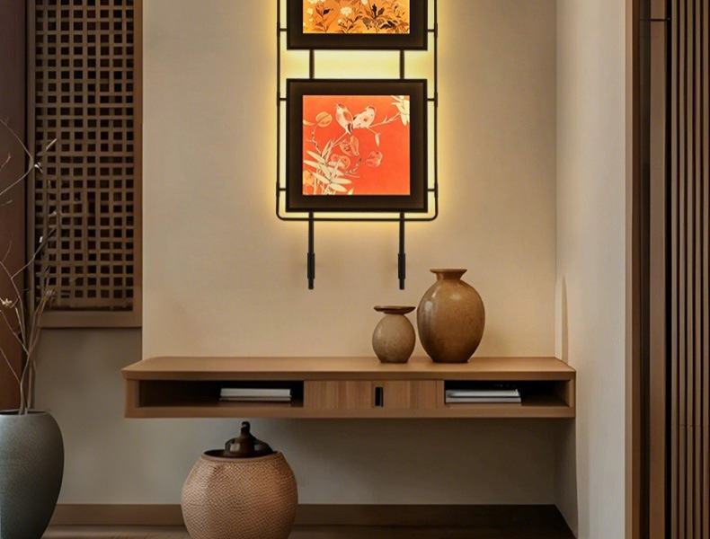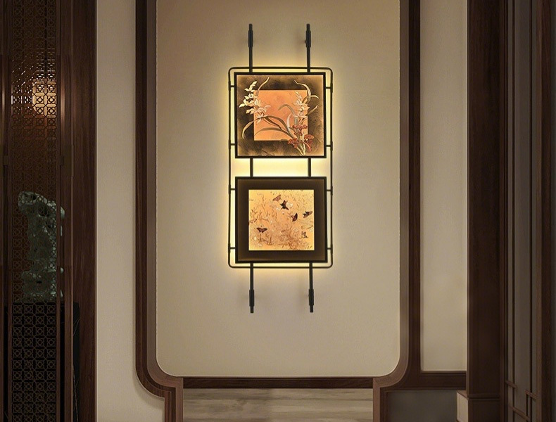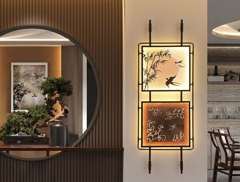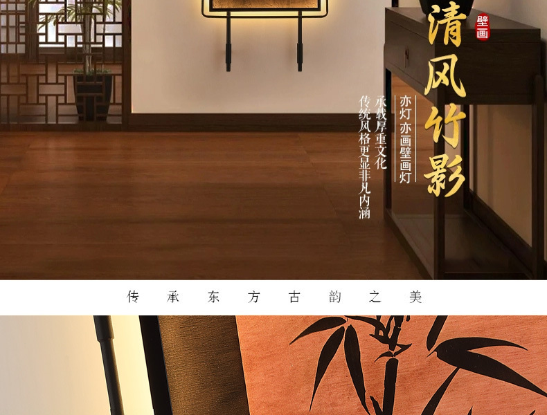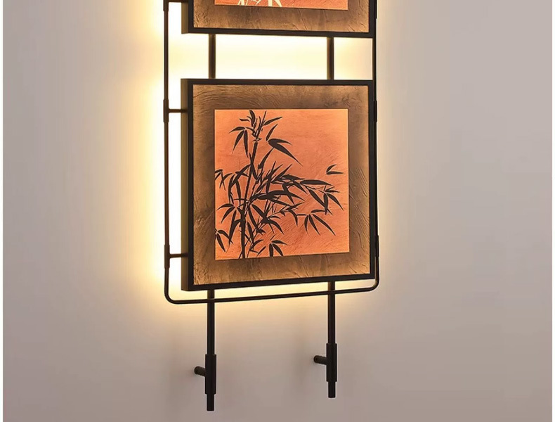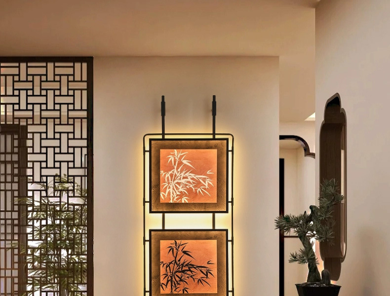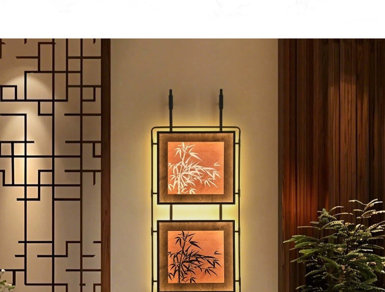 홈 입구 교수형 그림 새로운 중국 스타일 벽 램프 복도 통로 장식 그림 대나무 벽 램프 노래 스타일 미적 벽 그림 램프
