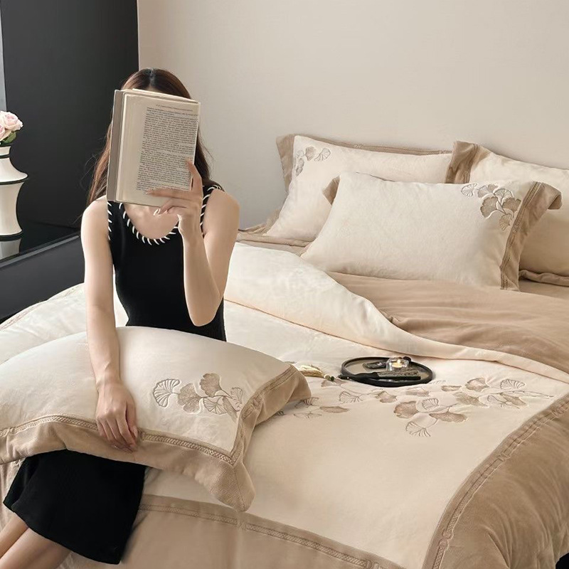 하이 엔드 가을과 겨울 따뜻한 높은 무게 실크 양털 4 피스 세트 부드러운 피부 친화적이고 달콤한 겨울 우유 양털 침구스토어 가기