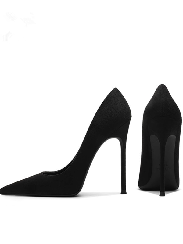 스웨이드 포인팅 슈퍼 하이힐 여성 스틸레토 힐 얕은 입 섹시 2025 봄과 가을 새로운 패션 섹시한 블랙 솔 싱글 신발