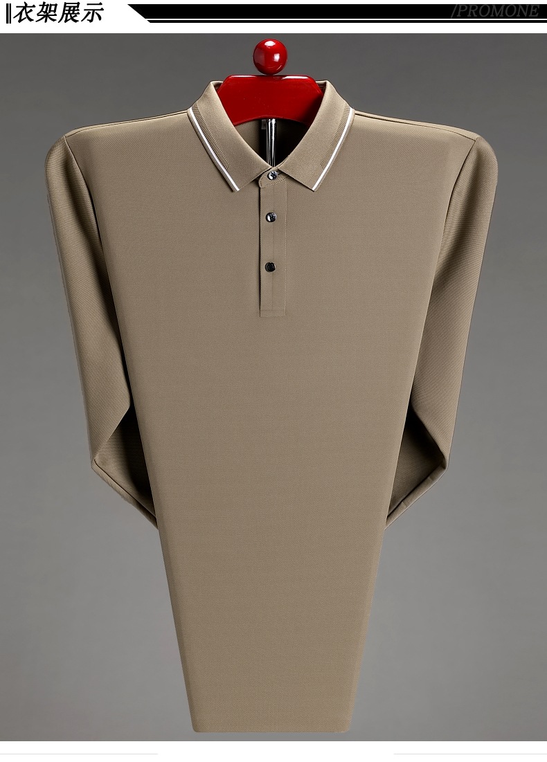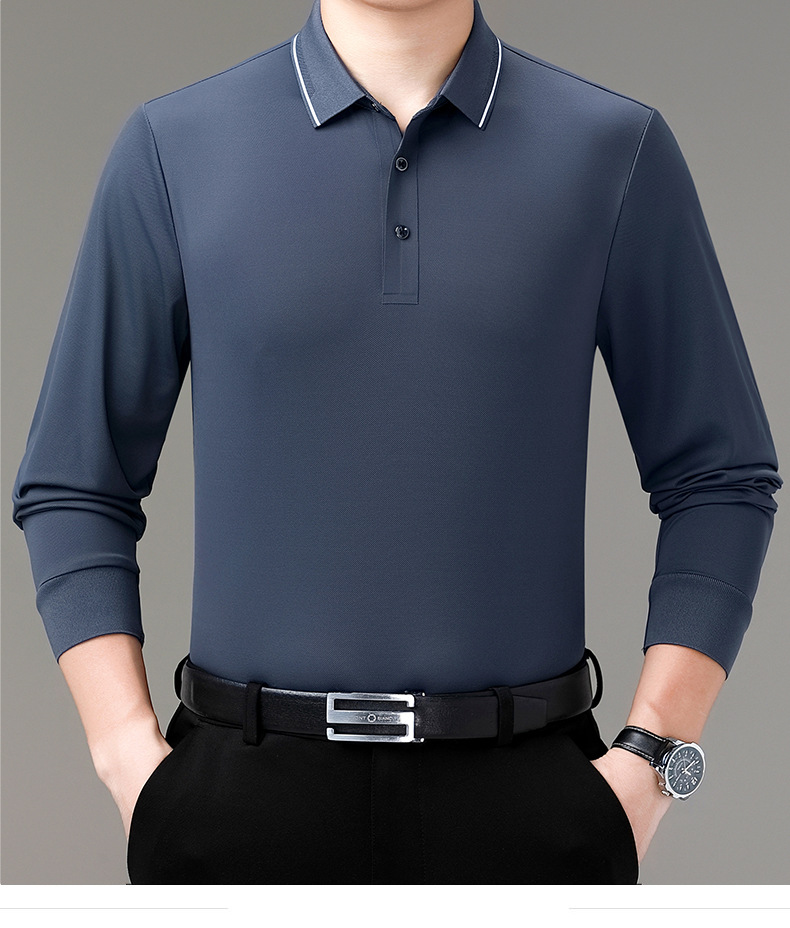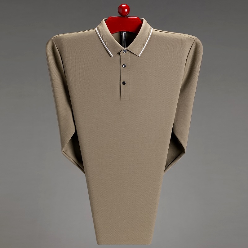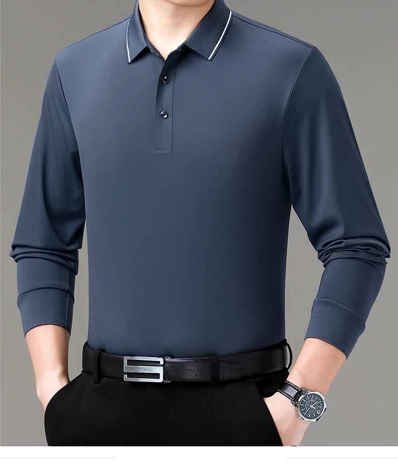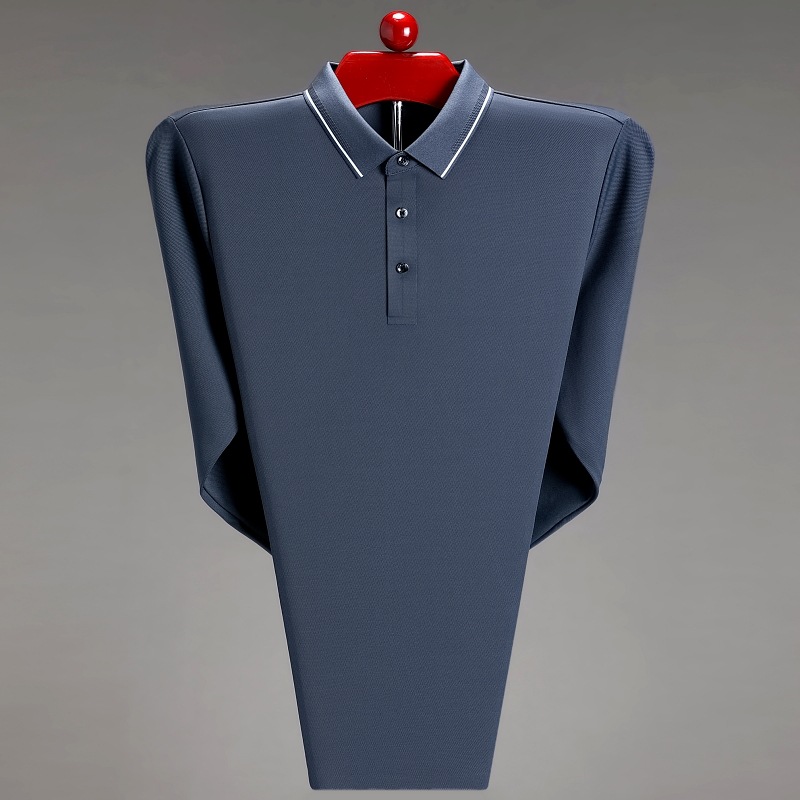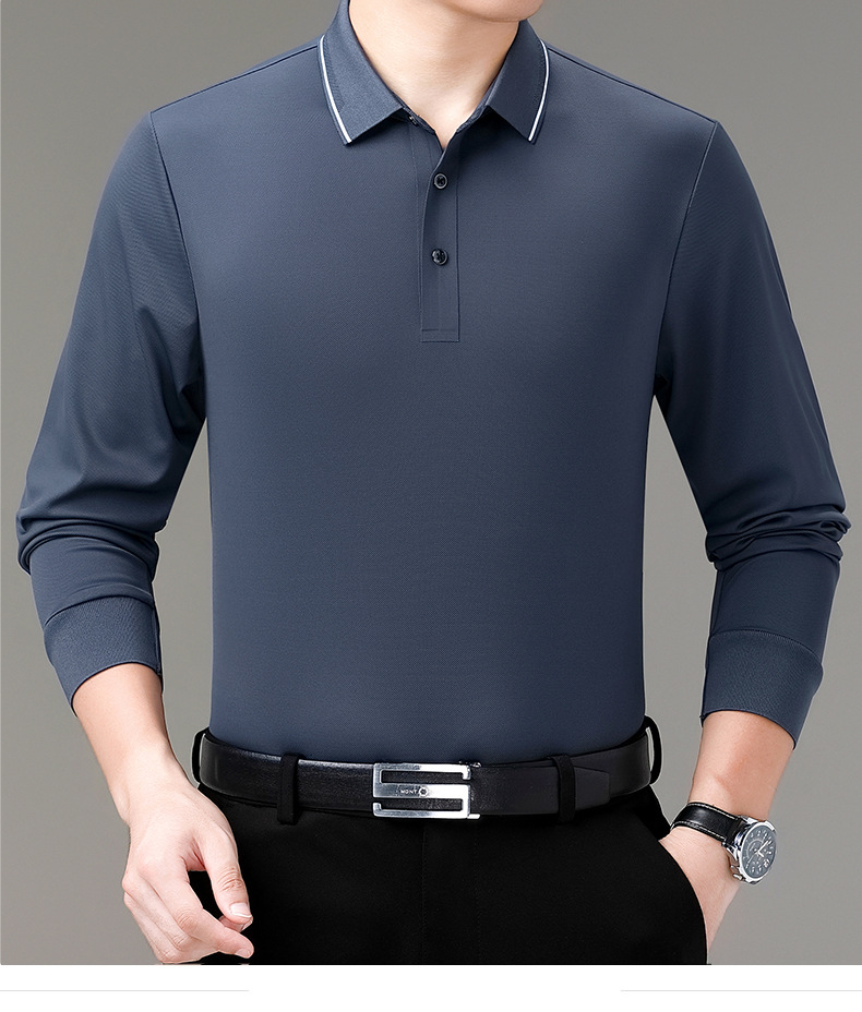 도매 하이 엔드 봄과 가을 중년 아빠, 면화 비즈니스 주름 방지 단색 남성용 티셔츠 긴 소매 POLO 셔츠스토어 가기