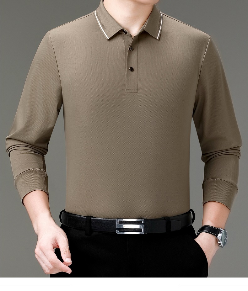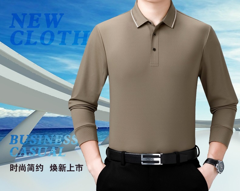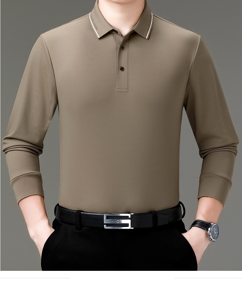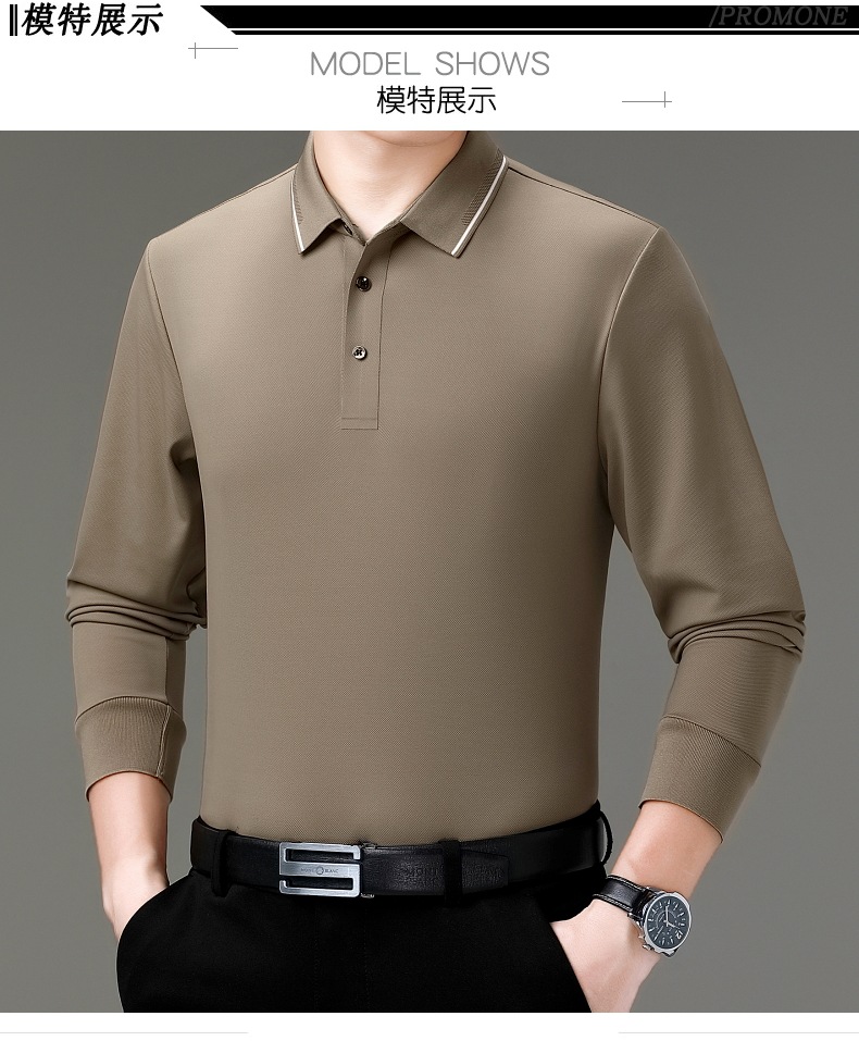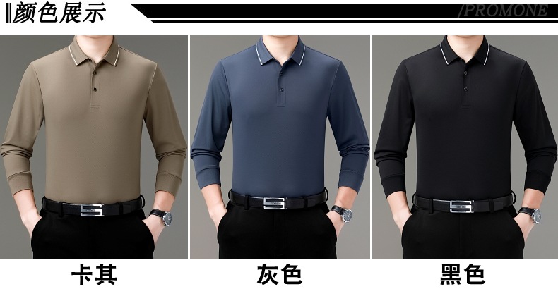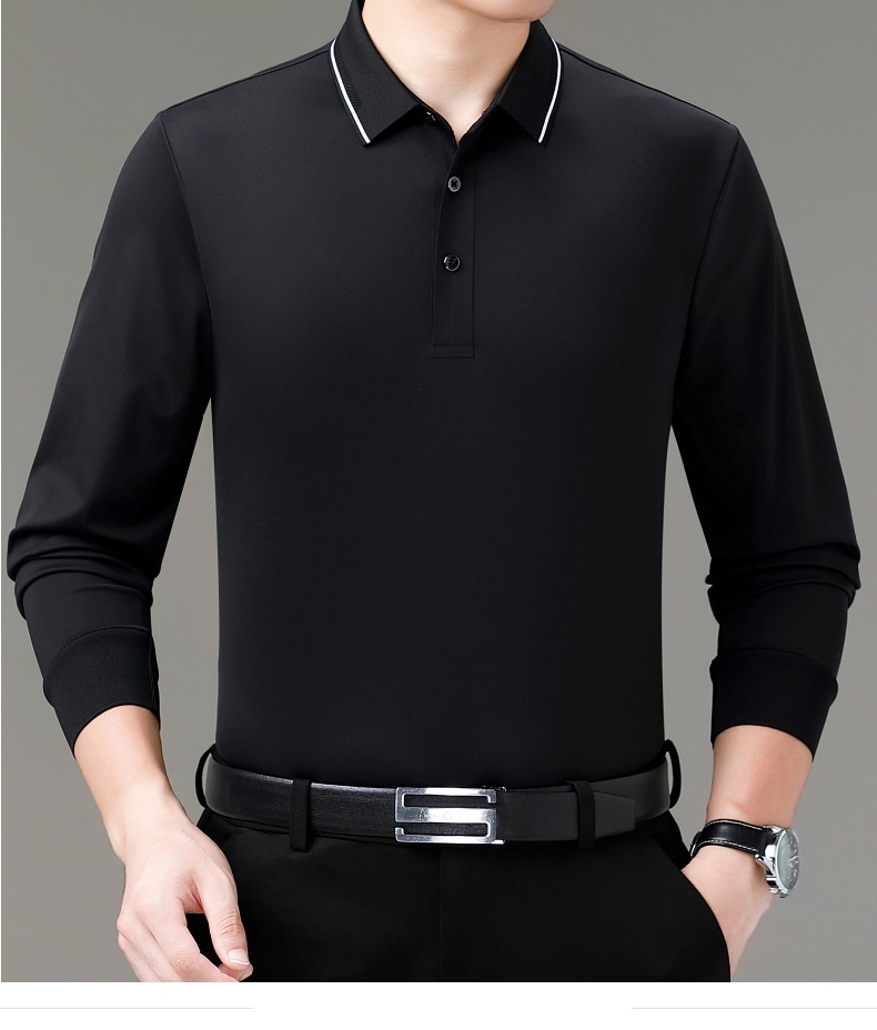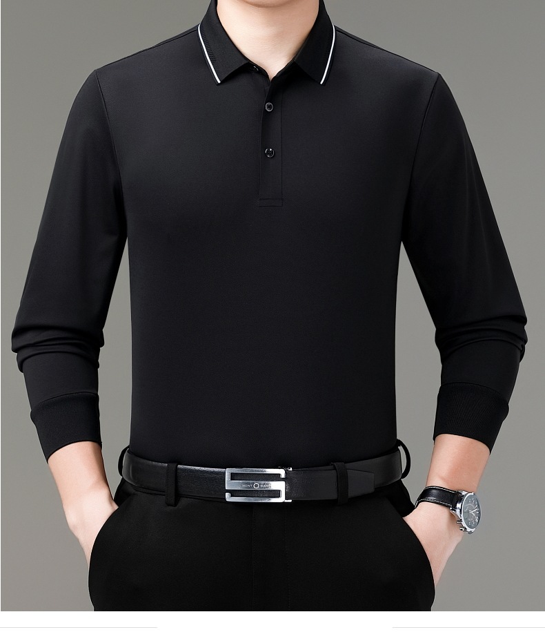 도매 하이 엔드 봄과 가을 중년 아빠, 면화 비즈니스 주름 방지 단색 남성용 티셔츠 긴 소매 POLO 셔츠스토어 가기