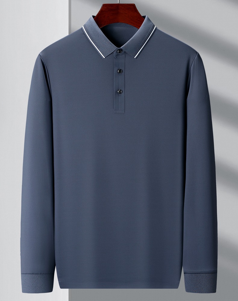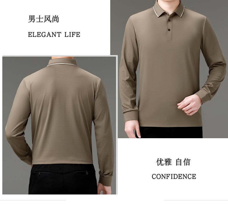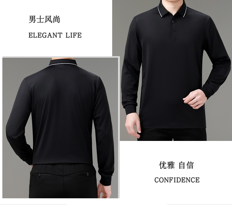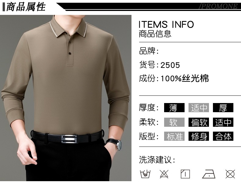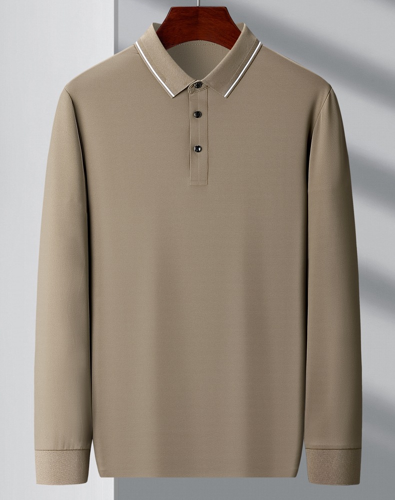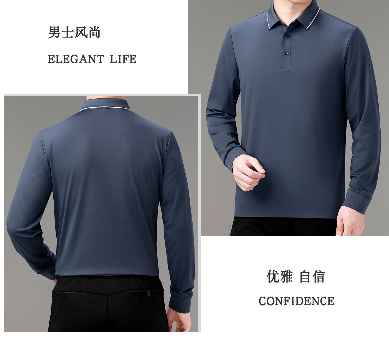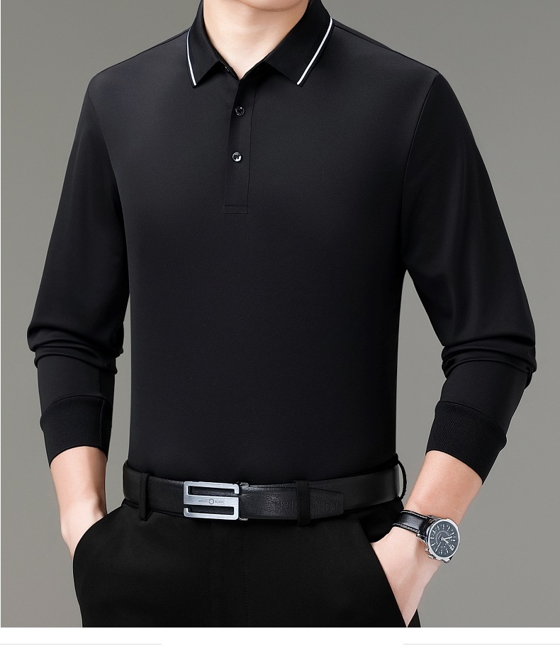 도매 하이 엔드 봄과 가을 중년 아빠, 면화 비즈니스 주름 방지 단색 남성용 티셔츠 긴 소매 POLO 셔츠스토어 가기