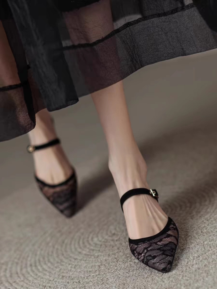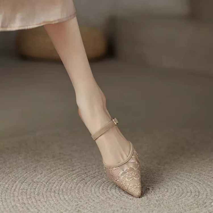 메쉬 포인팅 발가락 신발 2025 봄 새로운 프랑스 스타일 치마 슬립 온 얇은 발 뒤꿈치 슬리퍼스토어 가기