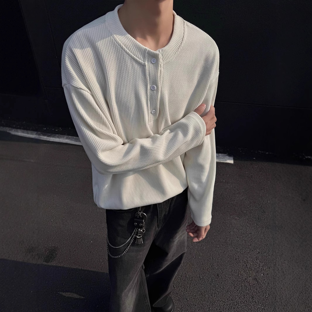 봄과 가을 하이 엔드 헨리 칼라 클린 핏 텍스처 긴팔 티셔츠 남성용 스태킹웨어 내부 스웨터베이스 셔츠