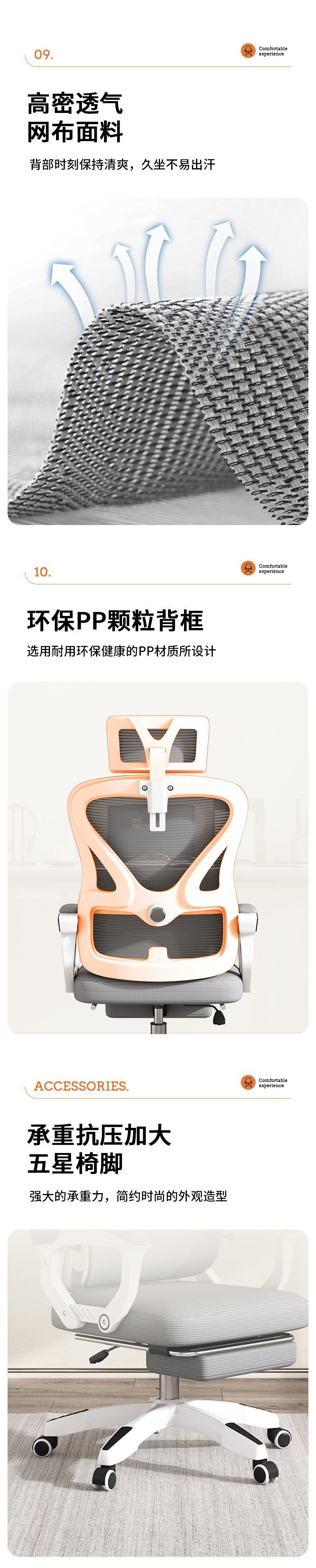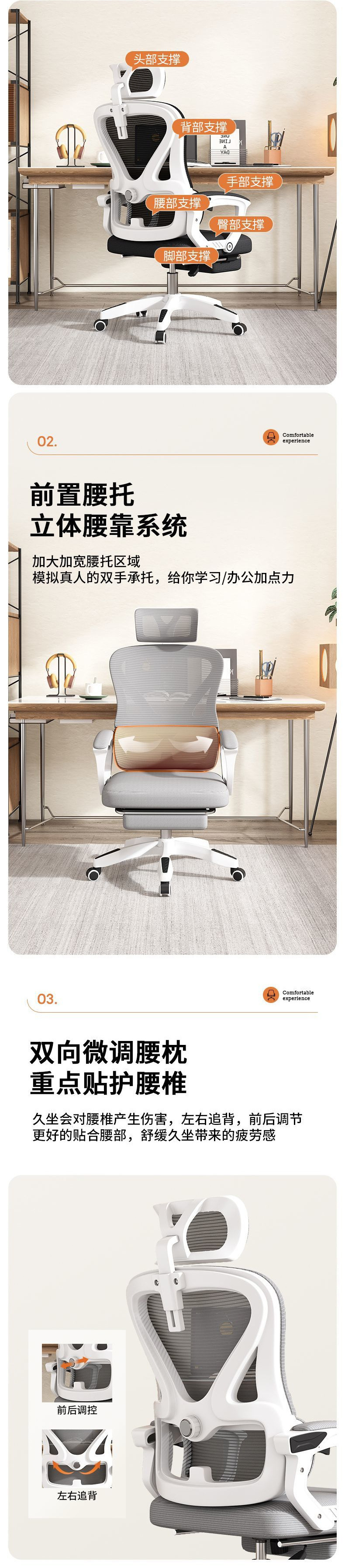 • 흰색 프레임 회색 메쉬 [발판 없음] 전면 요추 지지대