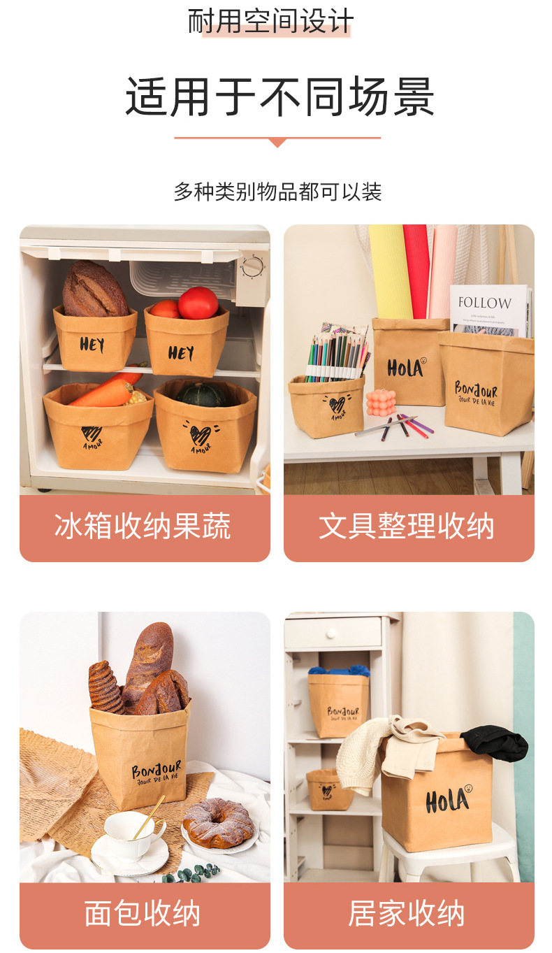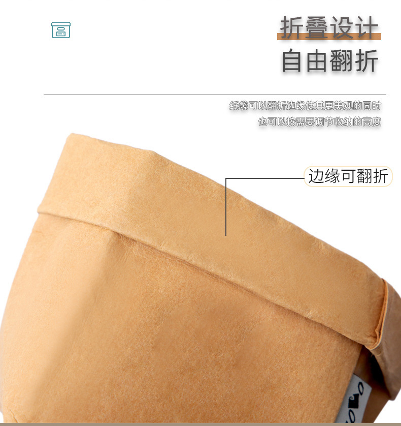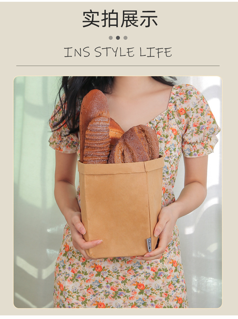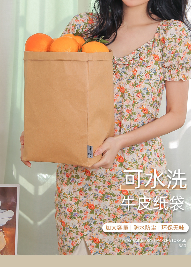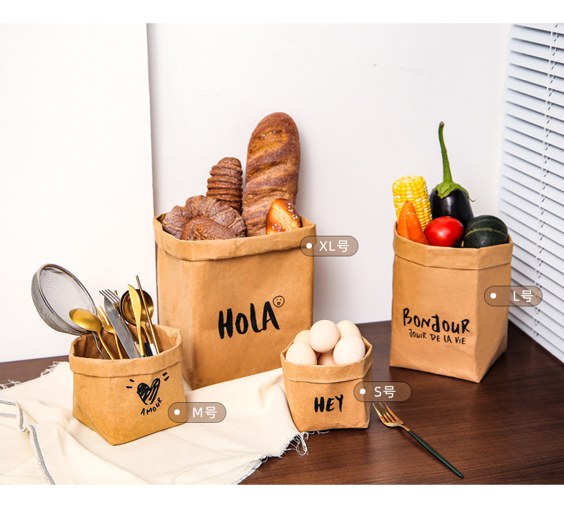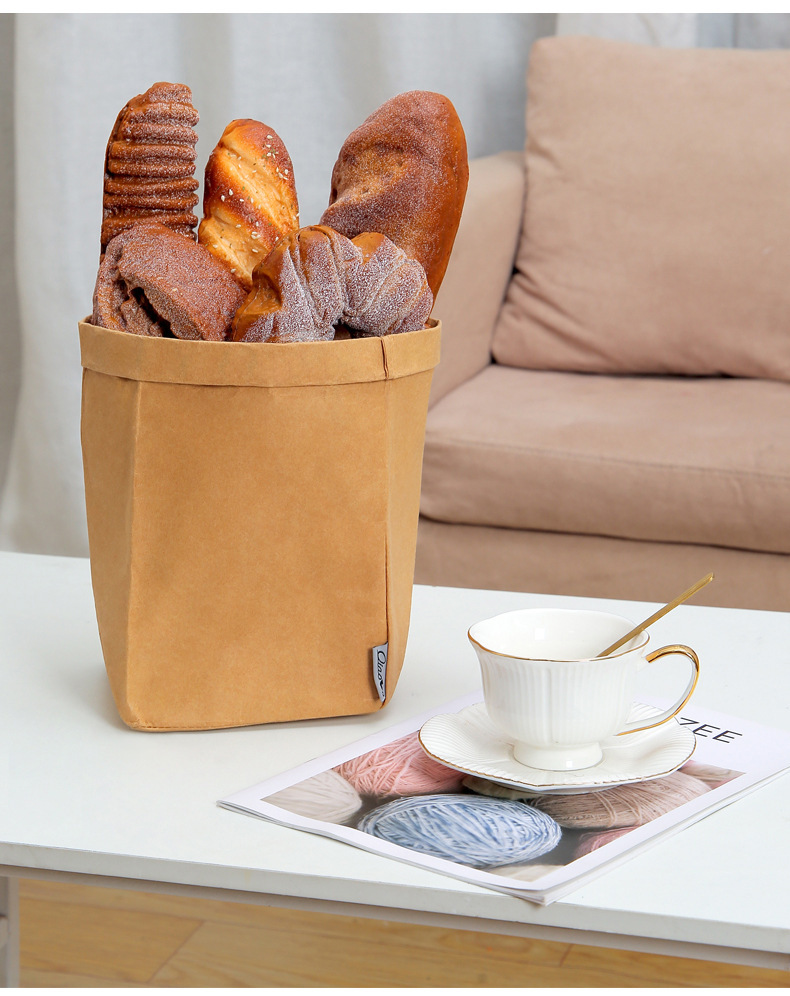 세탁 가능한 크래프트 종이 봉지 내 복고풍 스타일의 식품 등급 보관 가방 냉장고 및 주방 두꺼운 데스크탑 보관 가방
