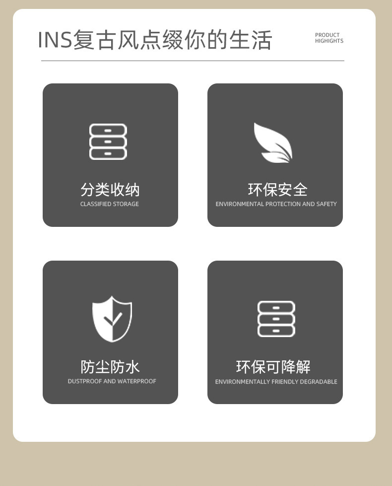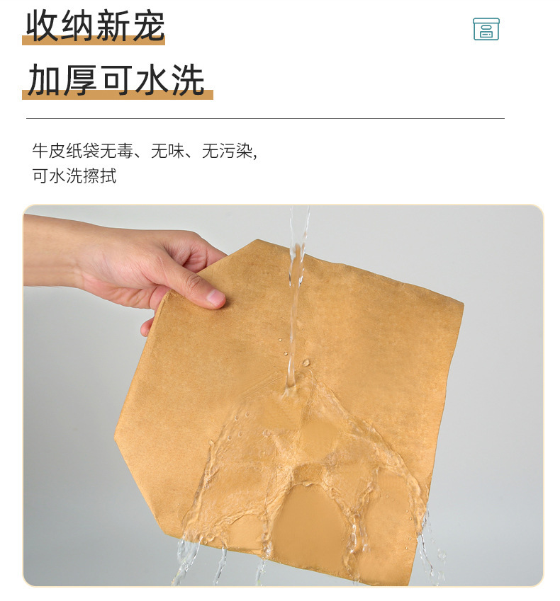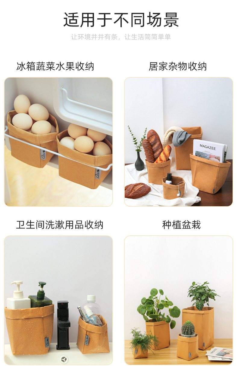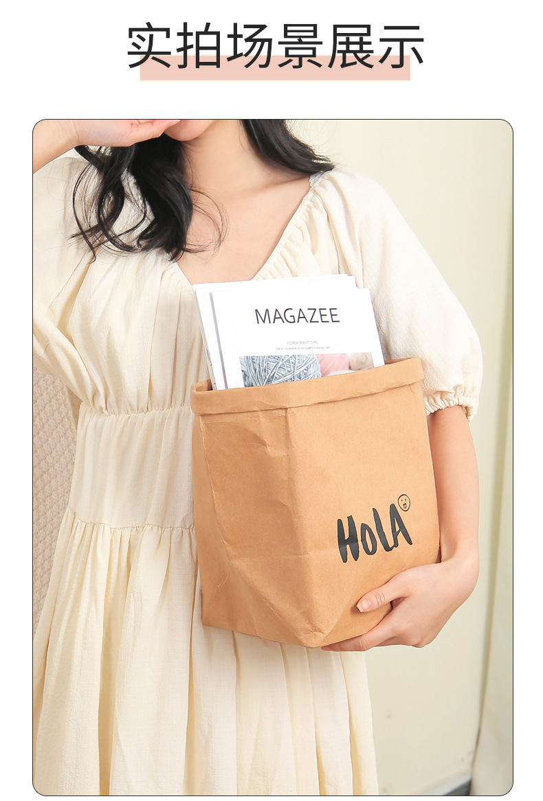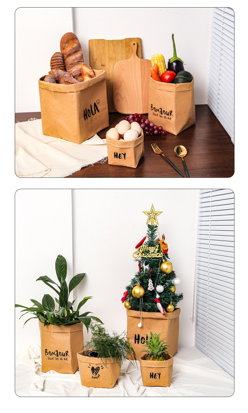 세탁 가능한 크래프트 종이 봉지 내 복고풍 스타일의 식품 등급 보관 가방 냉장고 및 주방 두꺼운 데스크탑 보관 가방