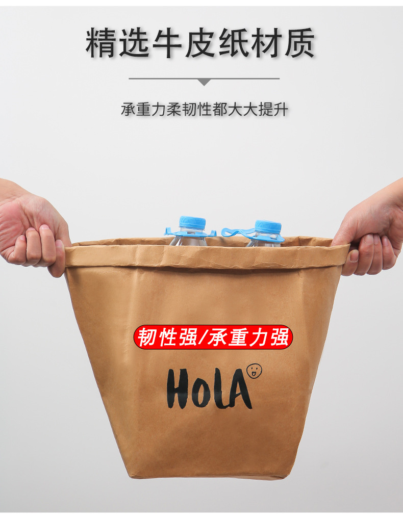 세탁 가능한 크래프트 종이 봉지 내 복고풍 스타일의 식품 등급 보관 가방 냉장고 및 주방 두꺼운 데스크탑 보관 가방스토어 가기