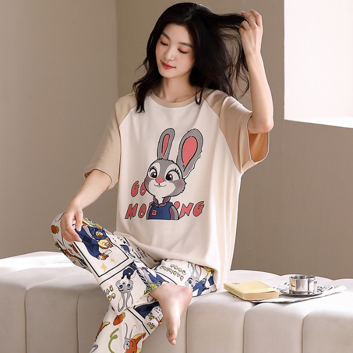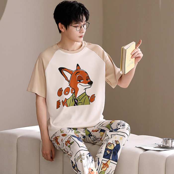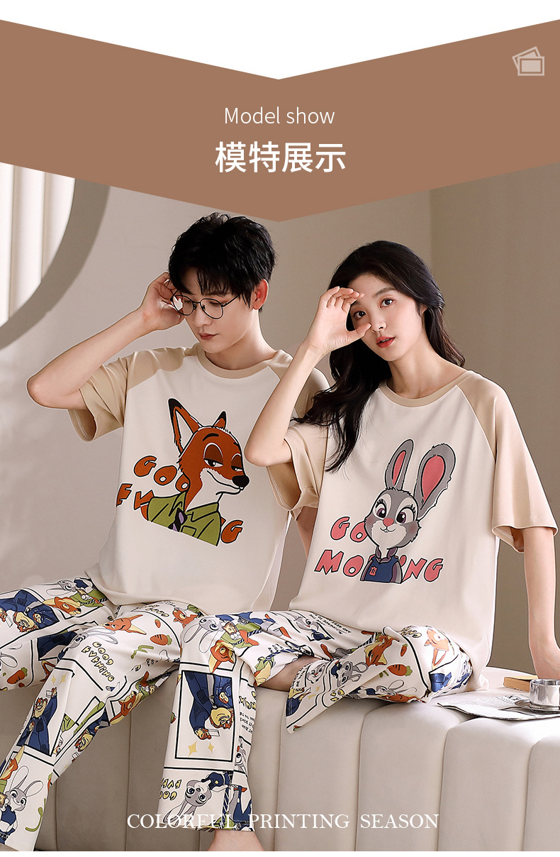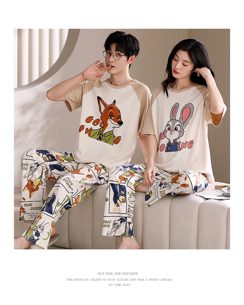 여름 새로운 순면 커플 반팔 바지 풀오버 파자마 남자 귀여운 만화 캐주얼 여성 홈 옷