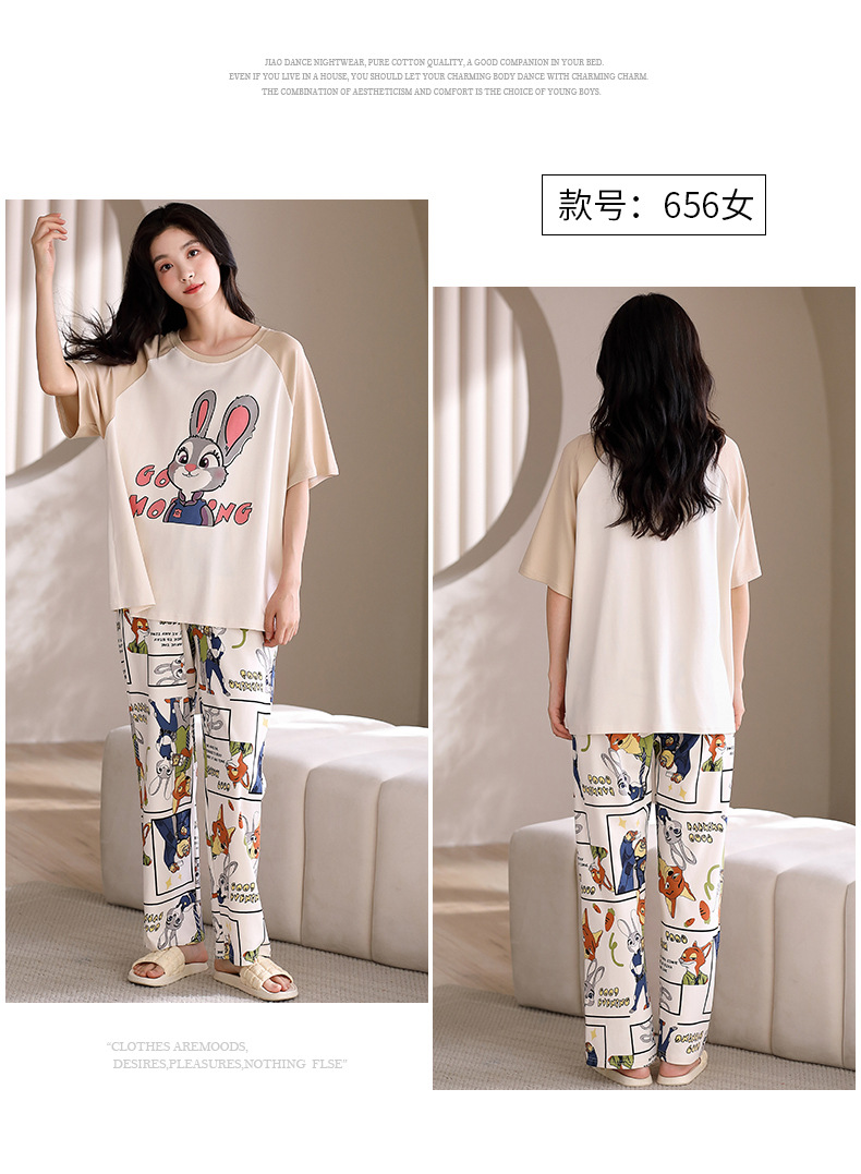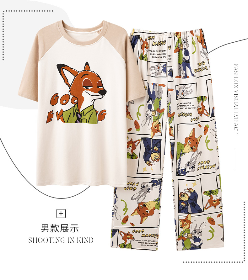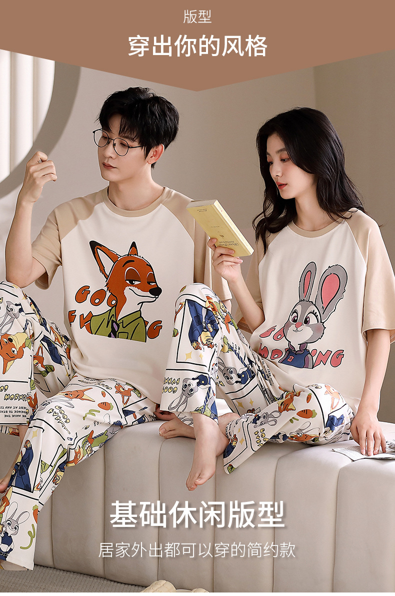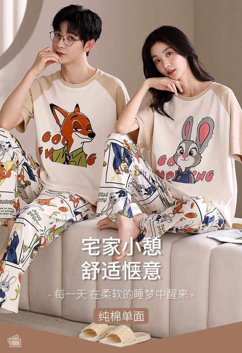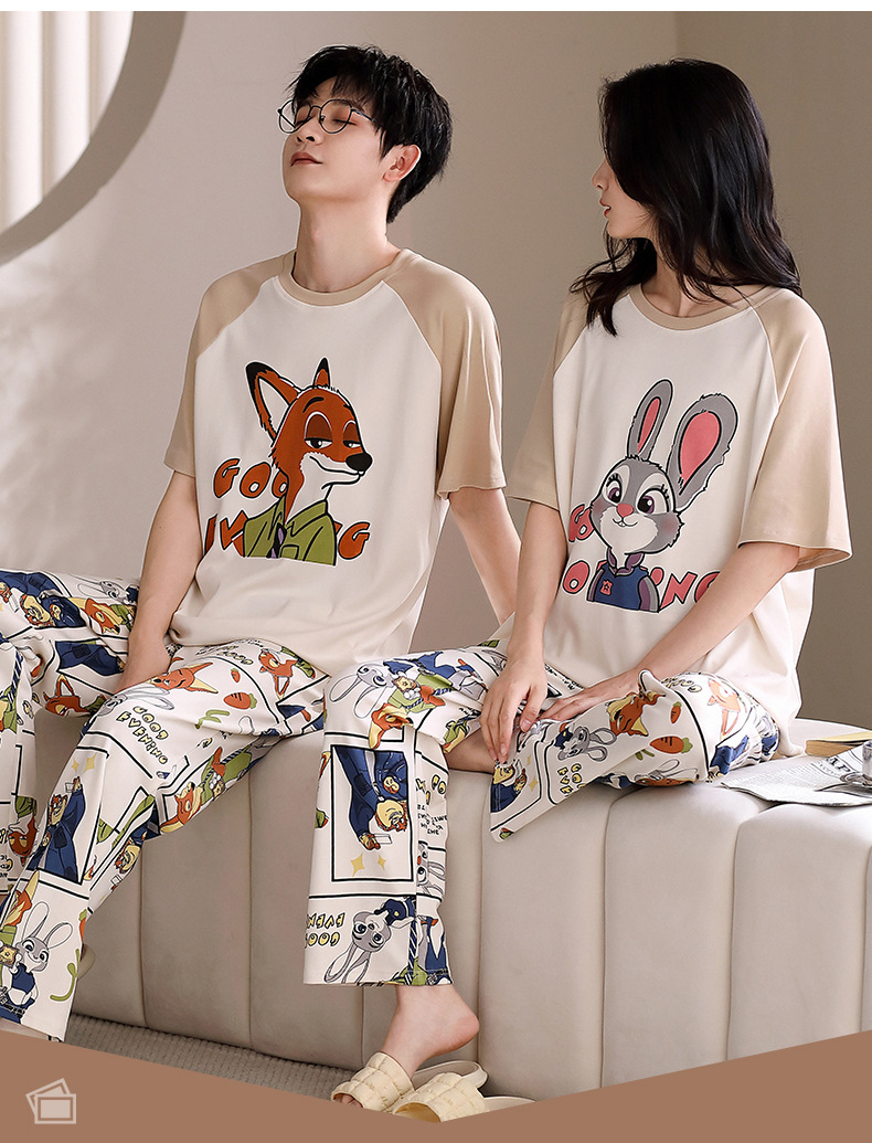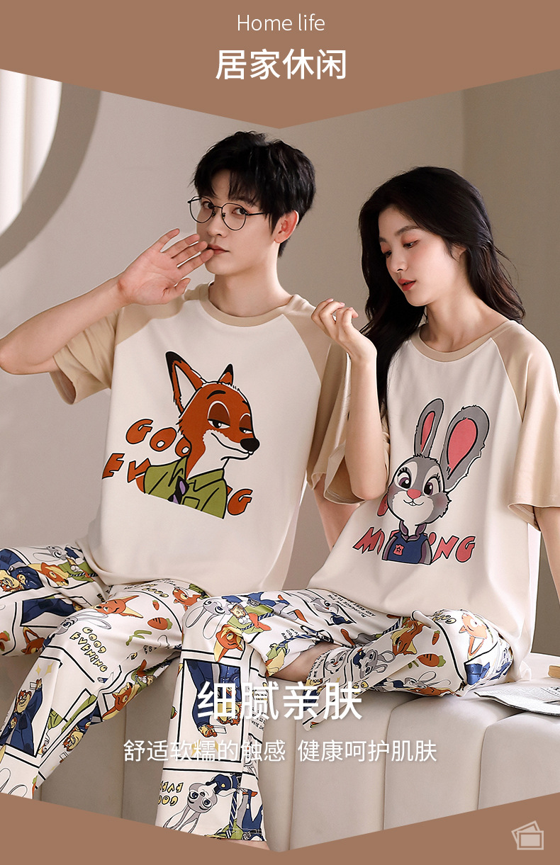 여름 새로운 순면 커플 반팔 바지 풀오버 파자마 남자 귀여운 만화 캐주얼 여성 홈 옷스토어 가기