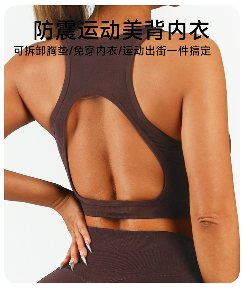 틱톡 심리스 원피스 피트니스 스포츠 브라, 푸쉬업, 충격방지, 노와이어, 아름다운 등라인, 요가탑, 외출용