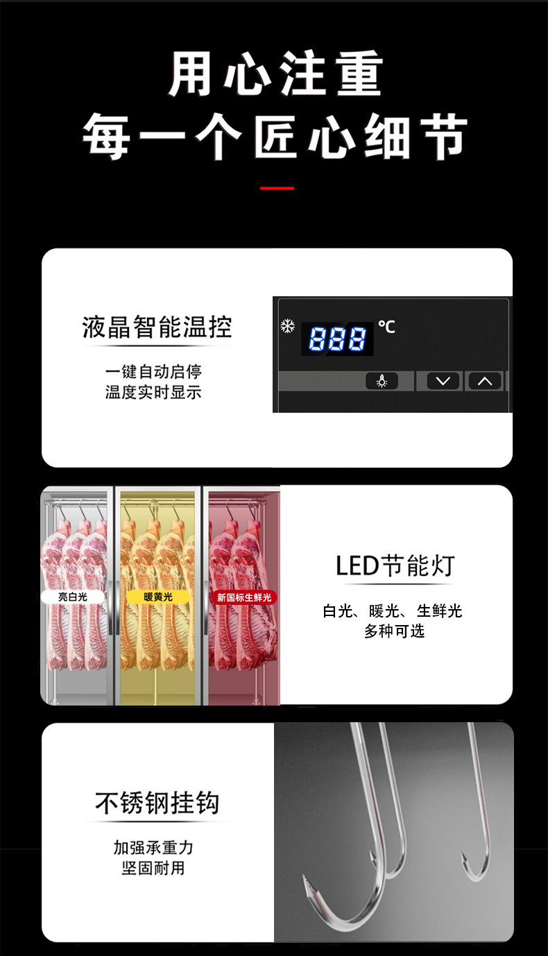 고기걸이장, 상업용 신선보관장, 신선육냉동장, 숙성장, 냉장수직냉장소, 신선한 쇠고기 및 양고기 소시지 디스플레이장스토어 가기