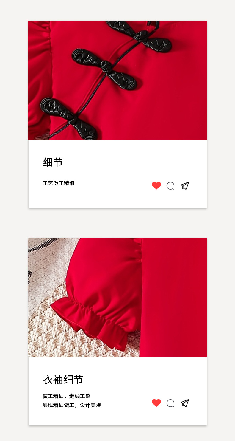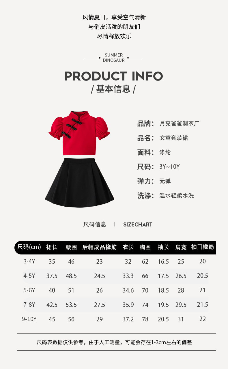 소녀의 짧은 치마 투피스 세트 레드 랜턴 슬리브 중국 버클 블랙 주름 치마 어린이 국가 스타일 스커트스토어 가기