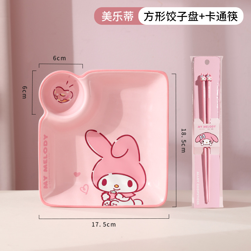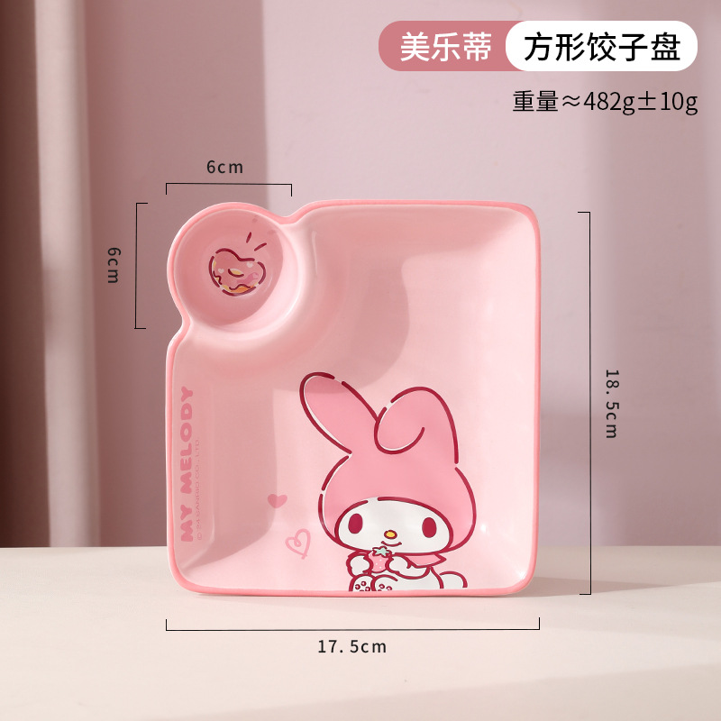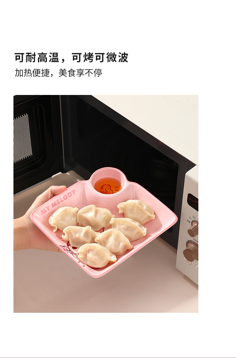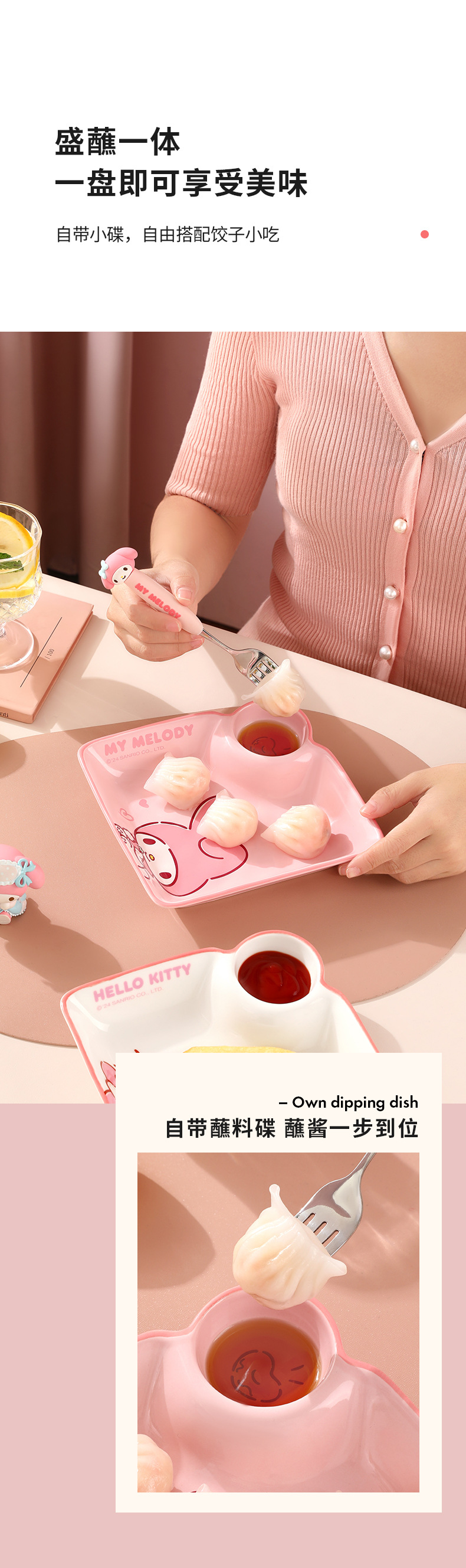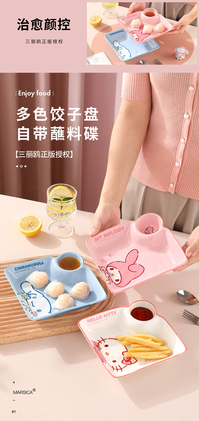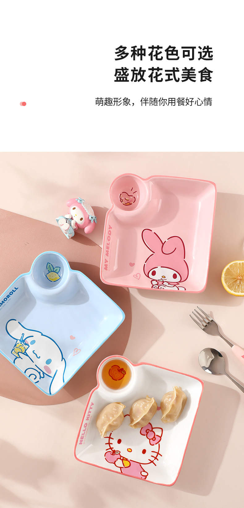산리오 만두 접시(식초 접시 포함), 가정용 어린이 아침 식사 접시, 칸막이 세라믹 접시, 만두를 먹는 특별 접시