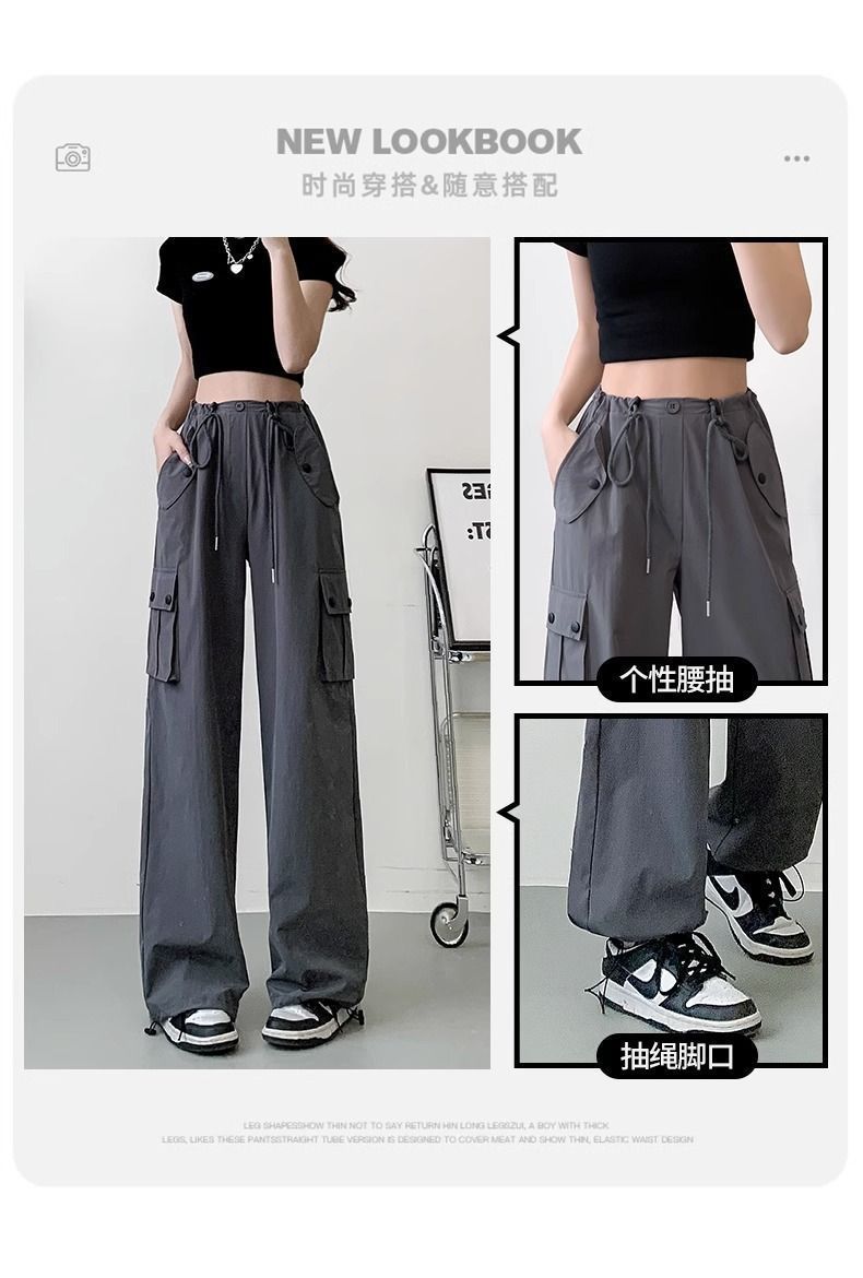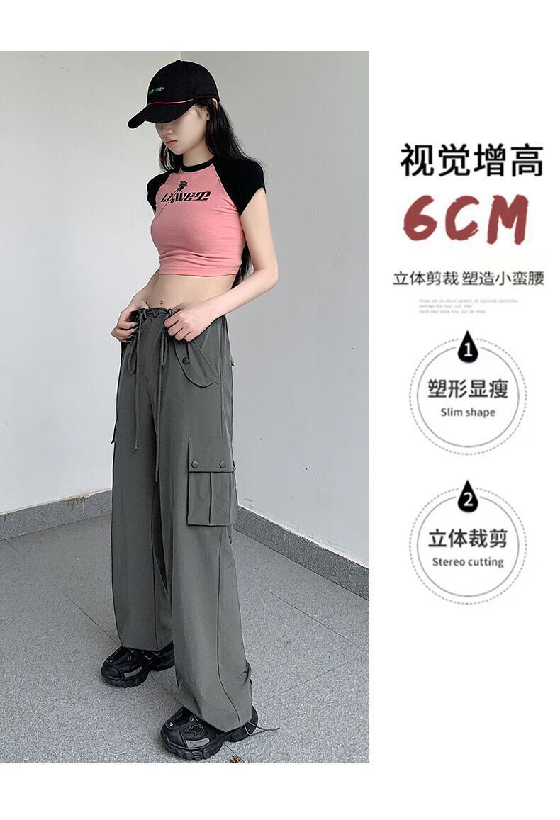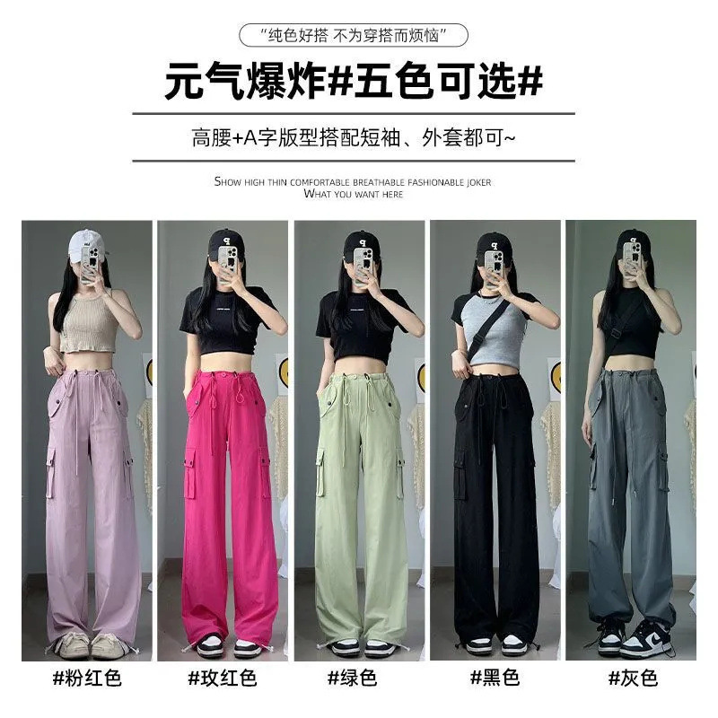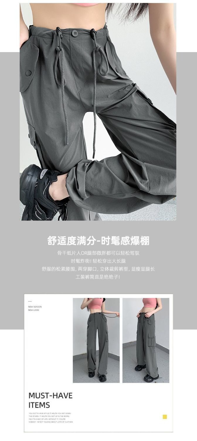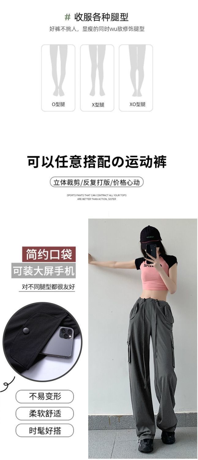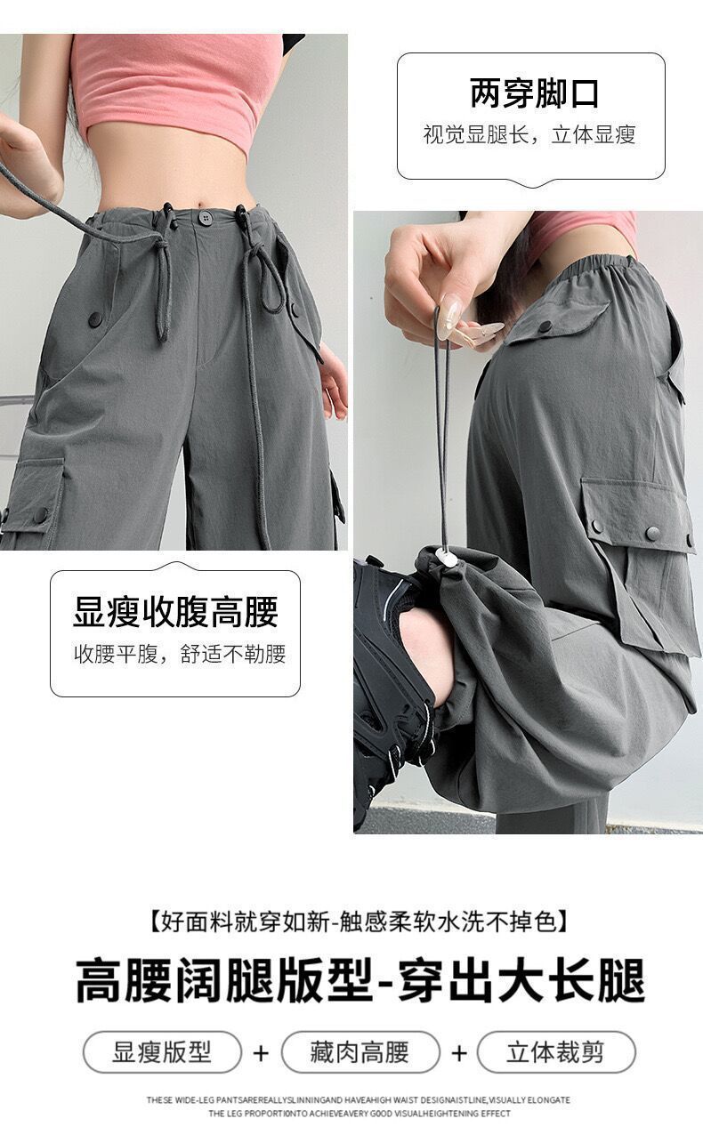소피의 작업 바지 여성 여름 얇은 높은 허리 캐주얼 넓은 다리 슬리밍 작은 미국 빠른 건조 다리 스포츠 바지스토어 가기