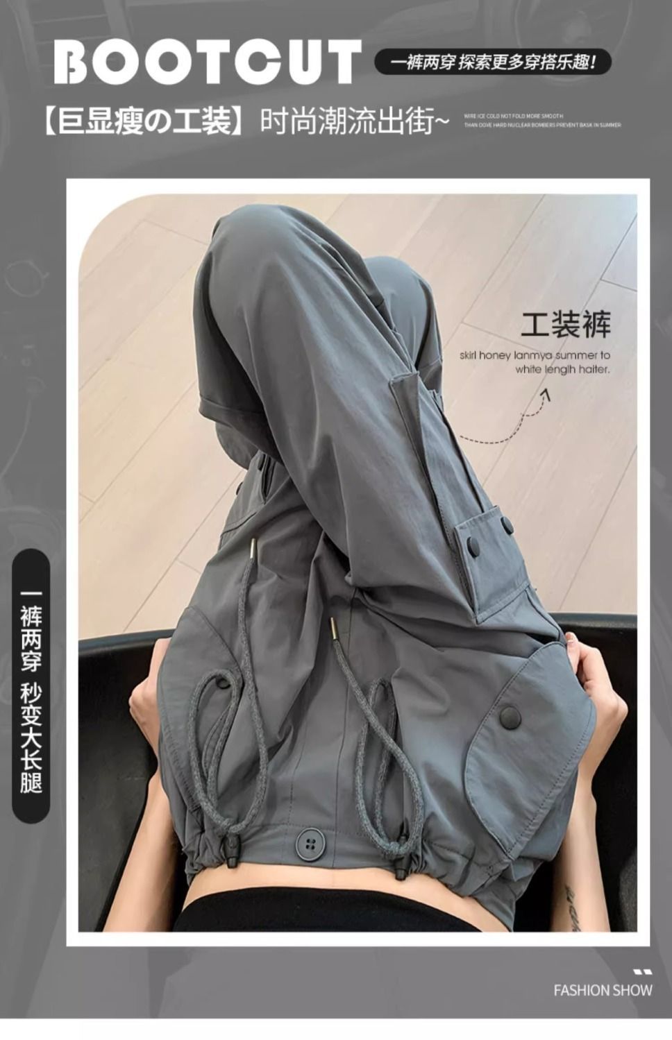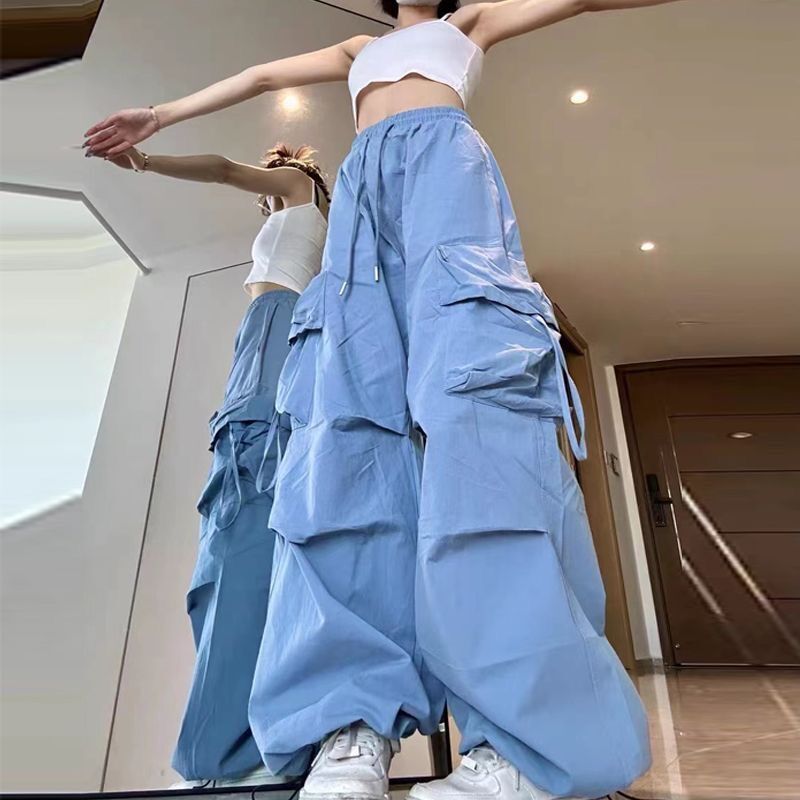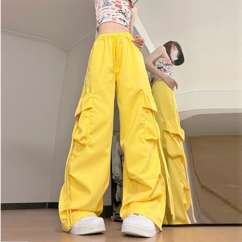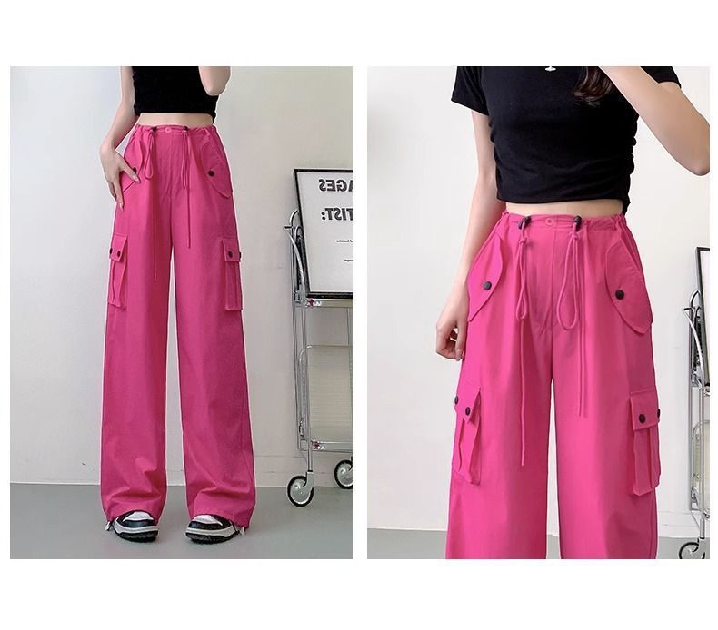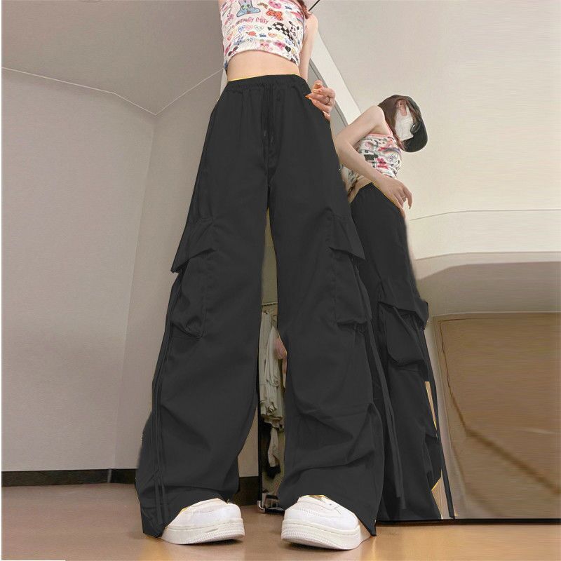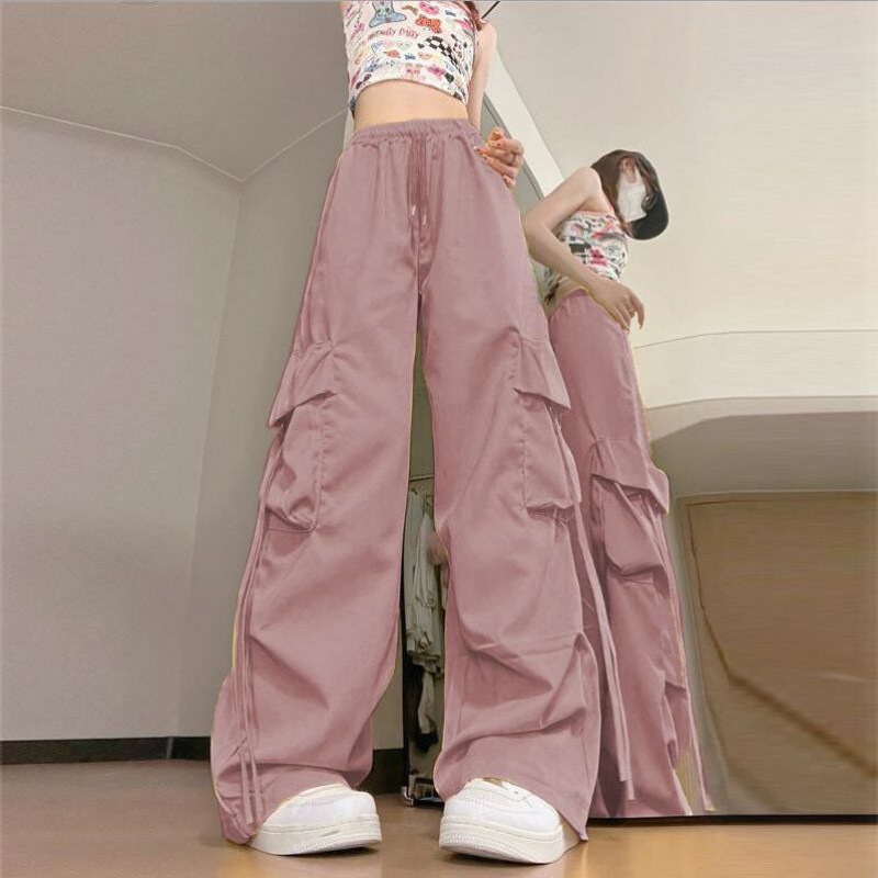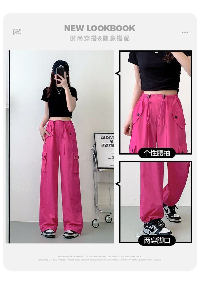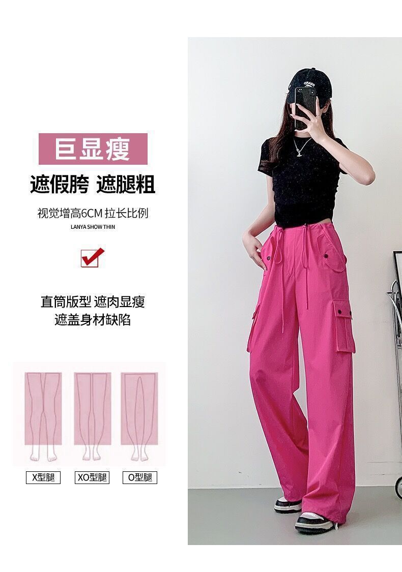 소피의 작업 바지 여성 여름 얇은 높은 허리 캐주얼 넓은 다리 슬리밍 작은 미국 빠른 건조 다리 스포츠 바지스토어 가기