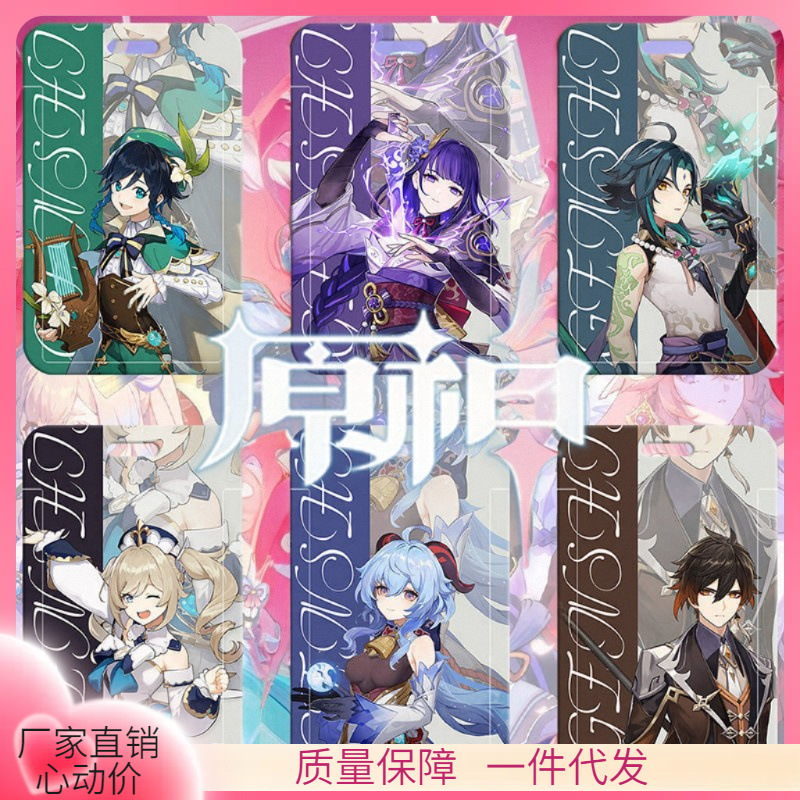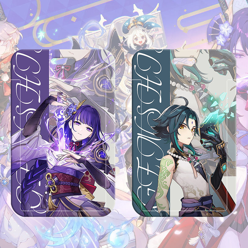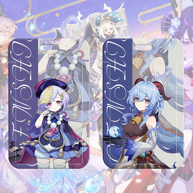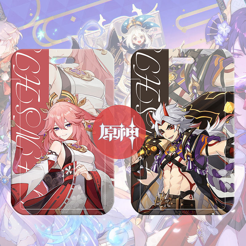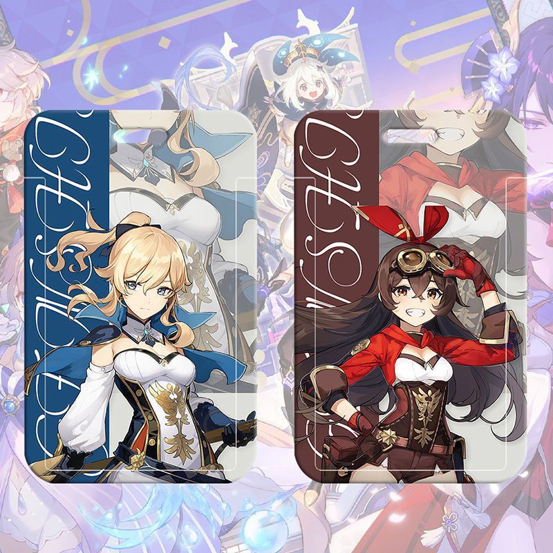 ♔ 게임 원신 카드 케이스 귀여운 학생 식사 카드 케이스 캠퍼스 카드 버스 지하철 출입증 작업증 명찰 보호