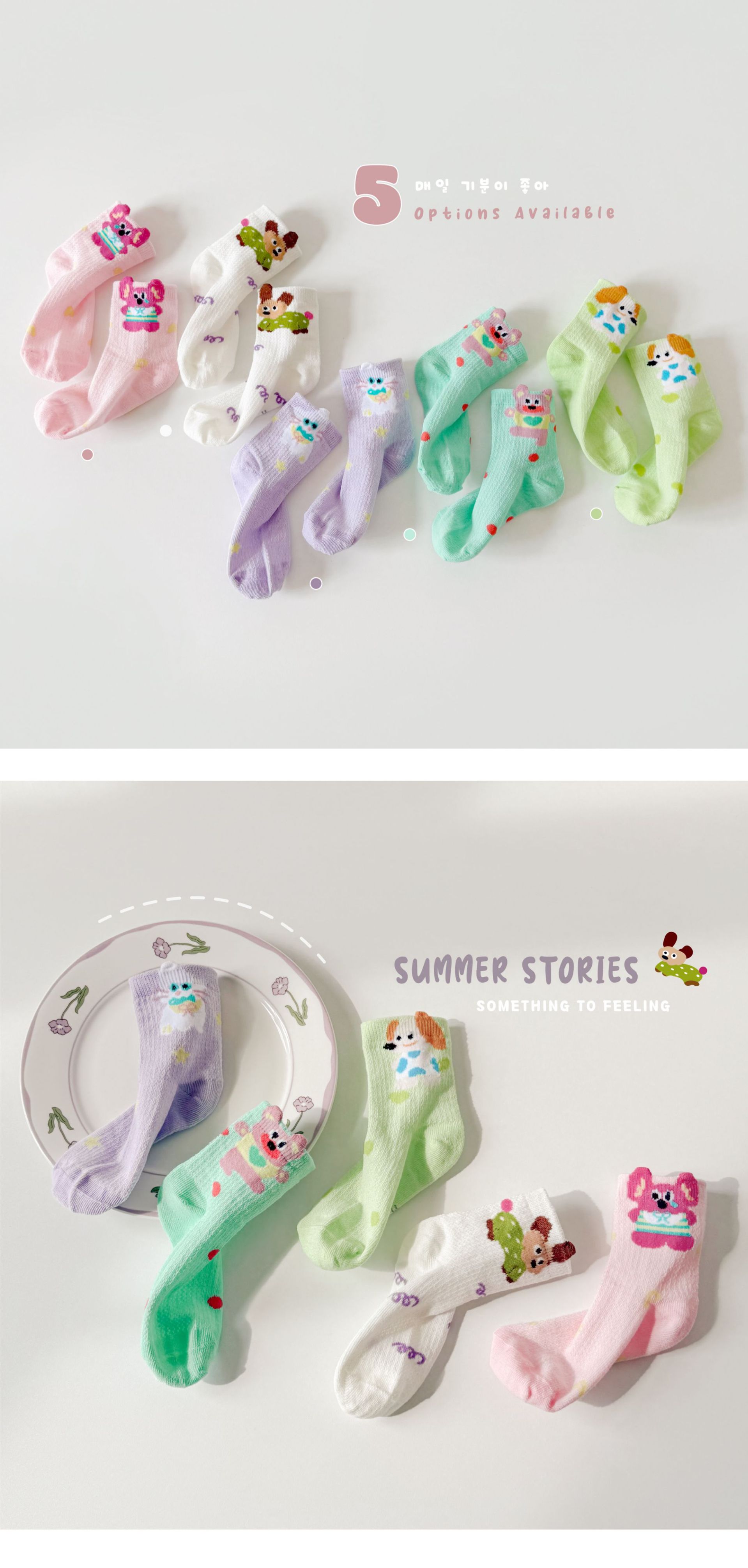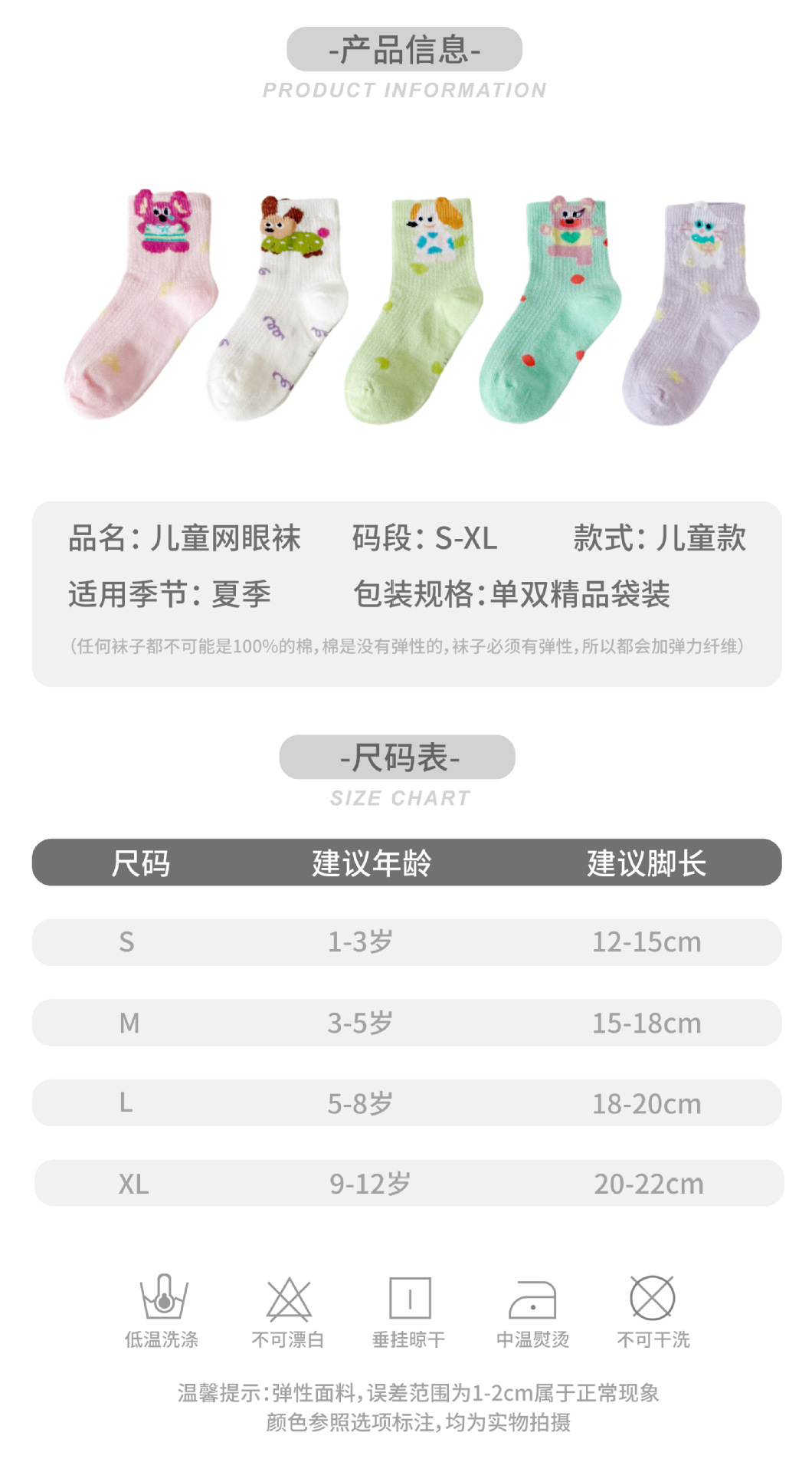 봄과 여름 1910 얇은 어린이 튜브 양말 아기 3 차원 동물 양말 소녀 여름 메쉬 만화 뼈없는 양말