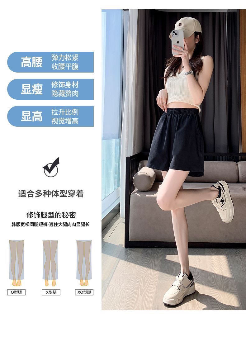 싱글/투 피스 여름 얇은 한국 스타일 작업복 반바지 높은 허리 느슨한 지방 커버 슬리밍 캐주얼 올매치 와이드 다리 바지