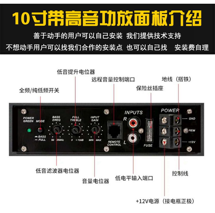 • [12V24V 범용] 트위터가 포함된 10inch Bluetooth 오디오 애호가 등급(전체 와이어 세트 포함)