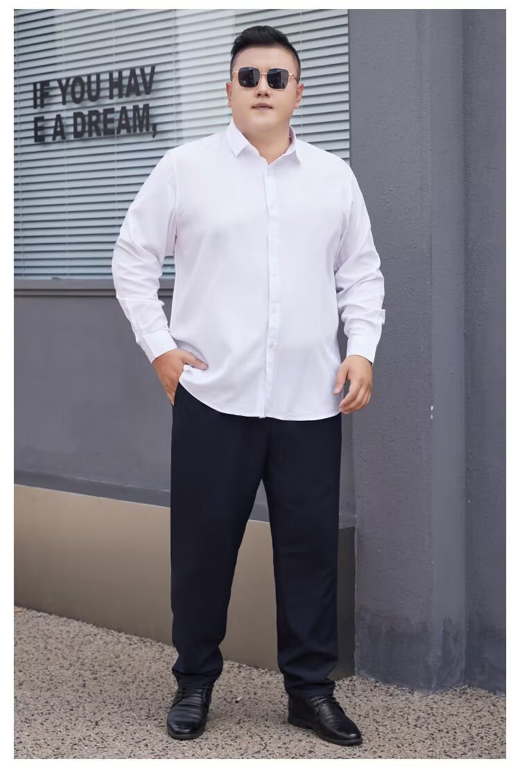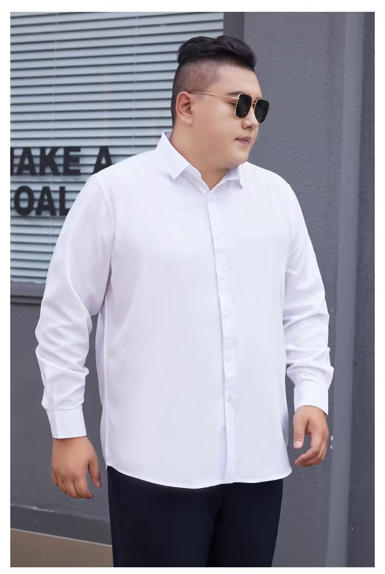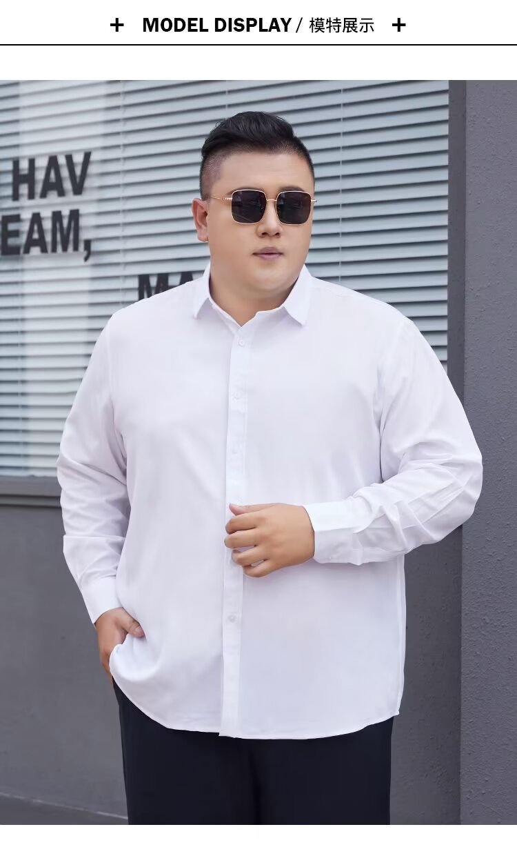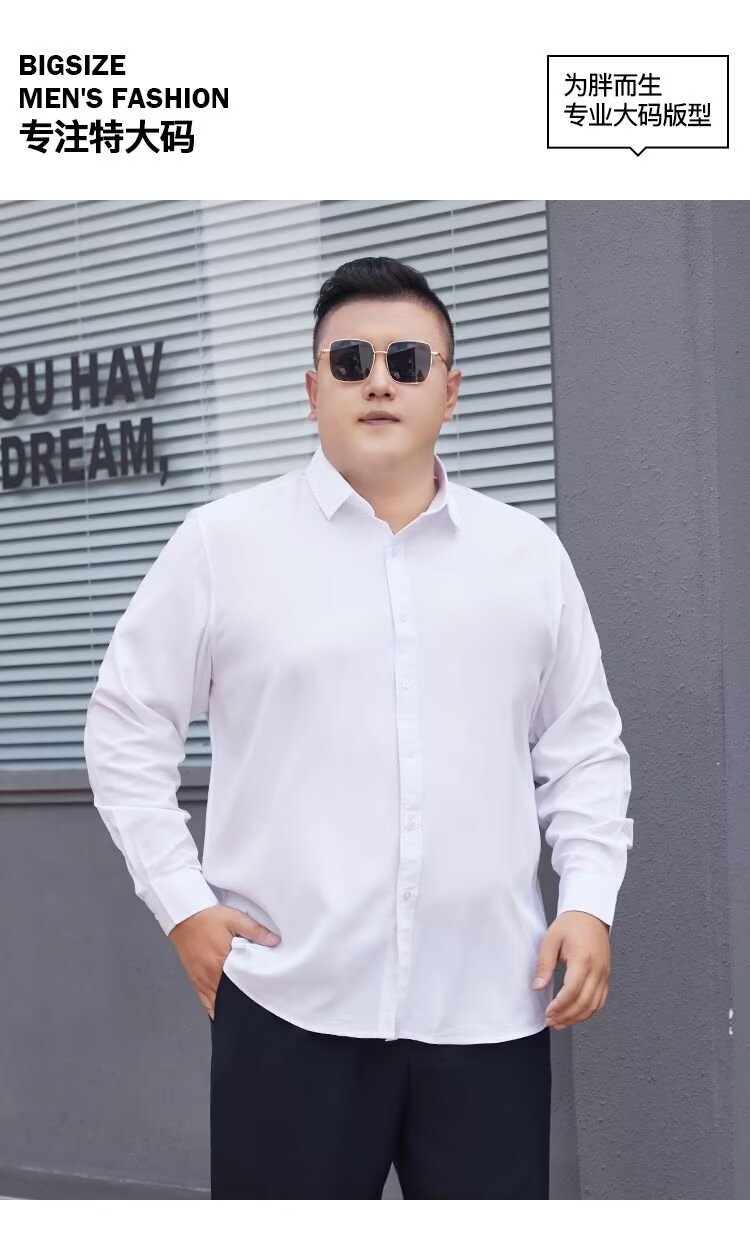플러스 사이즈 흰색 긴팔 셔츠 Extras 대형 남성 봄과 여름 비즈니스 원피스 다림질 무료 단색 느슨한 셔츠
