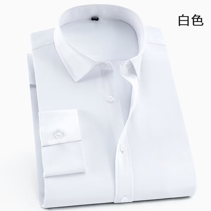 플러스 사이즈 흰색 긴팔 셔츠 Extras 대형 남성 봄과 여름 비즈니스 원피스 다림질 무료 단색 느슨한 셔츠스토어 가기