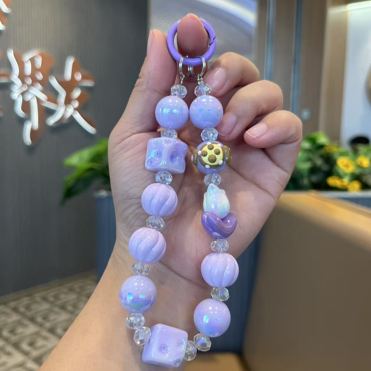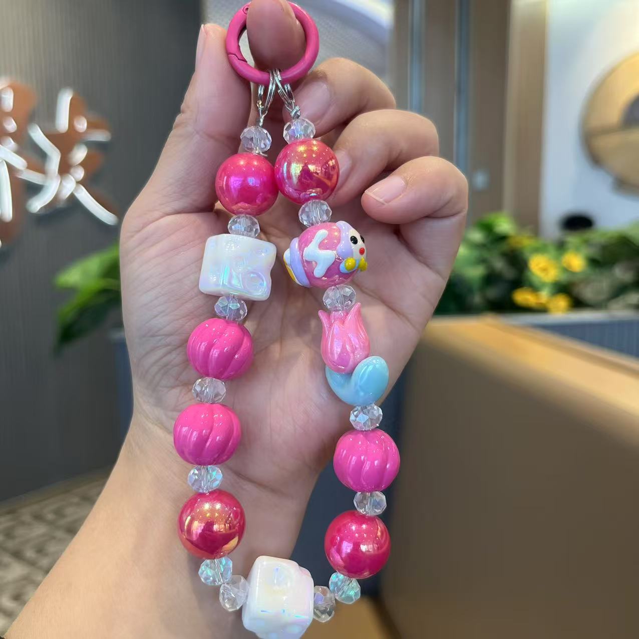 공장 직접 공급 전기 도금 컬러 아크릴 구슬 휴대 전화 체인 튤립 꽃 라이브 학생 가방 펜던트