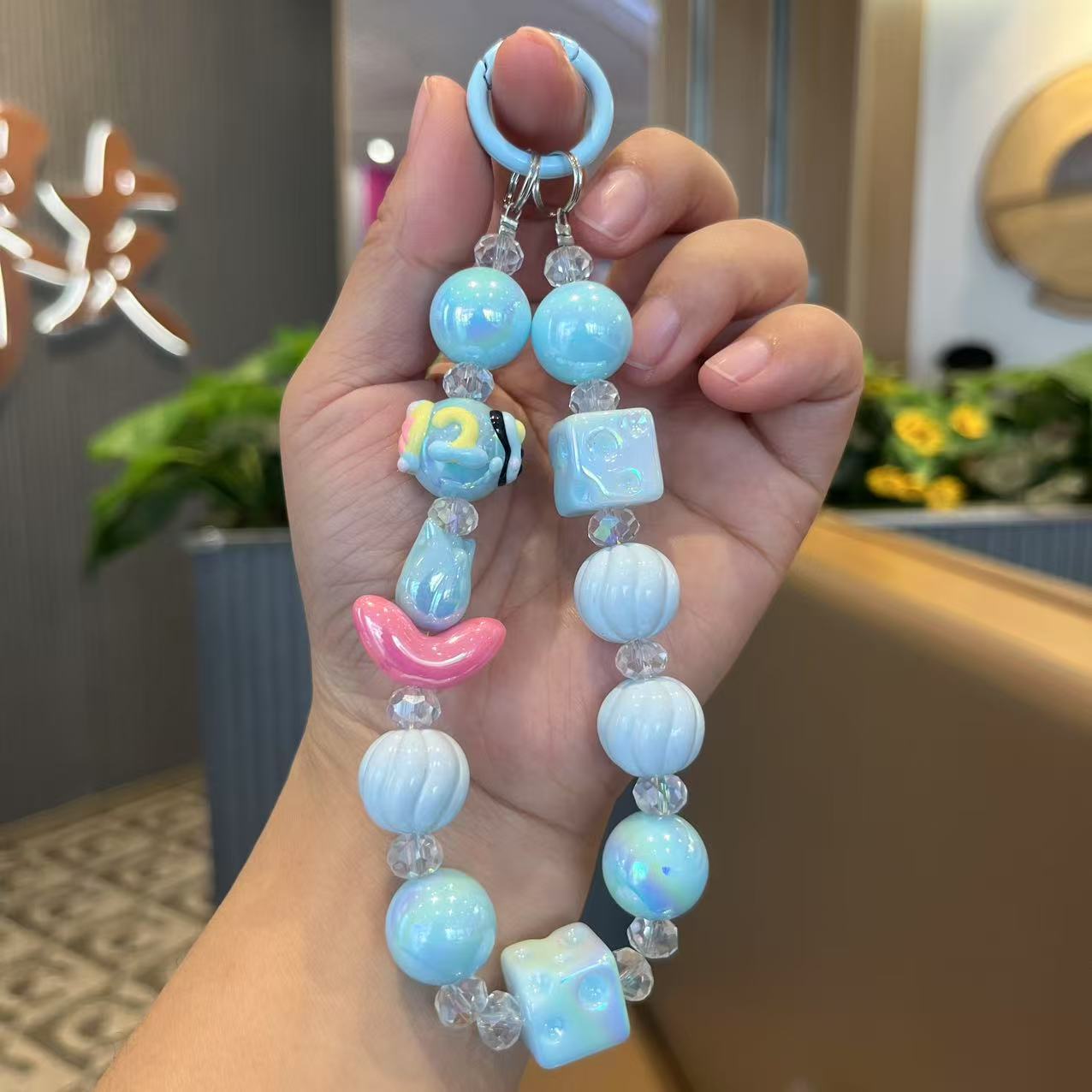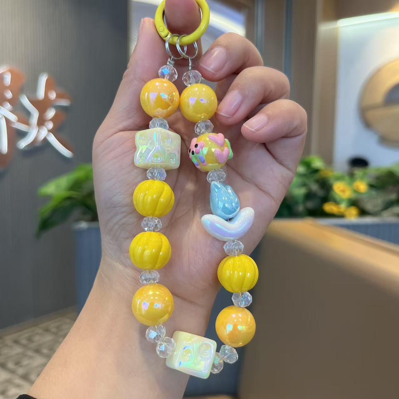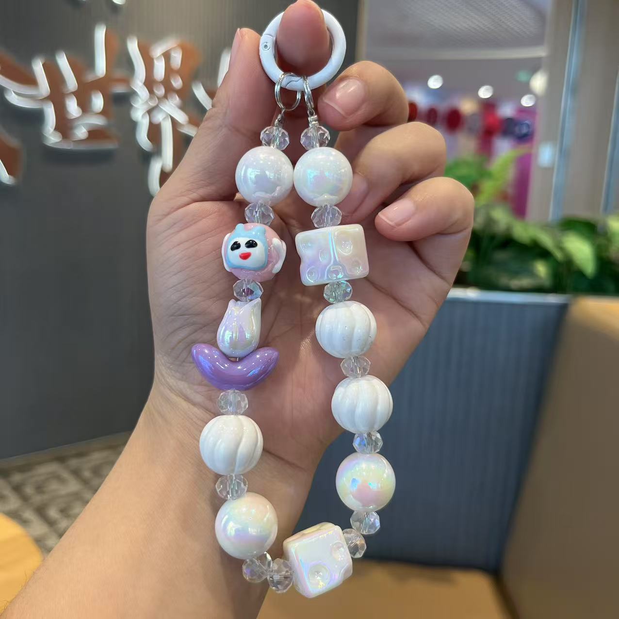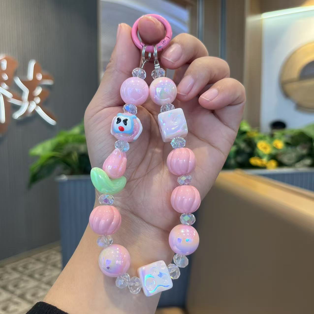 공장 직접 공급 전기 도금 컬러 아크릴 구슬 휴대 전화 체인 튤립 꽃 라이브 학생 가방 펜던트스토어 가기