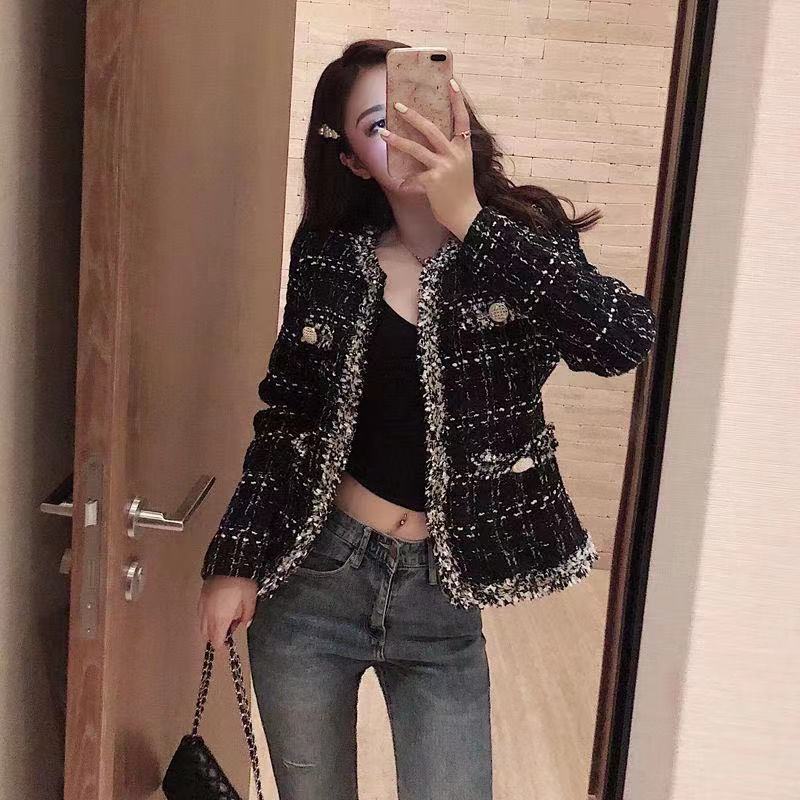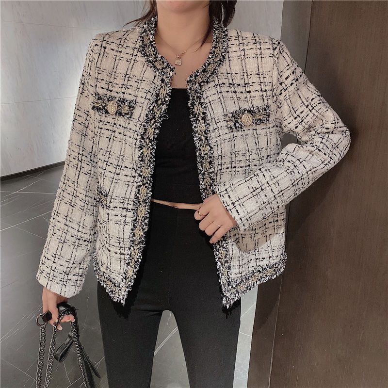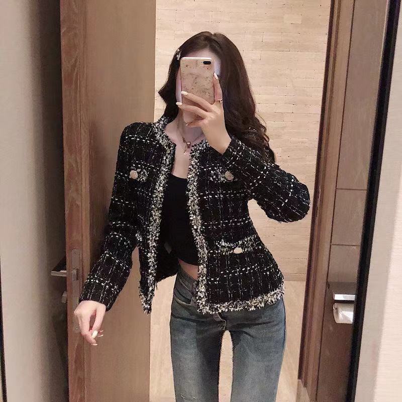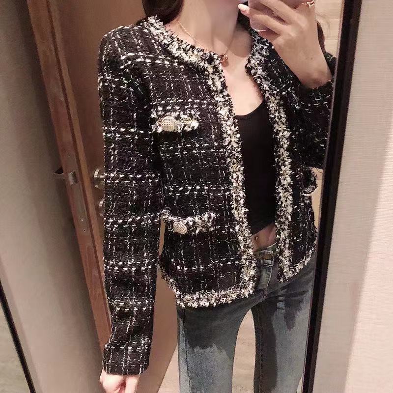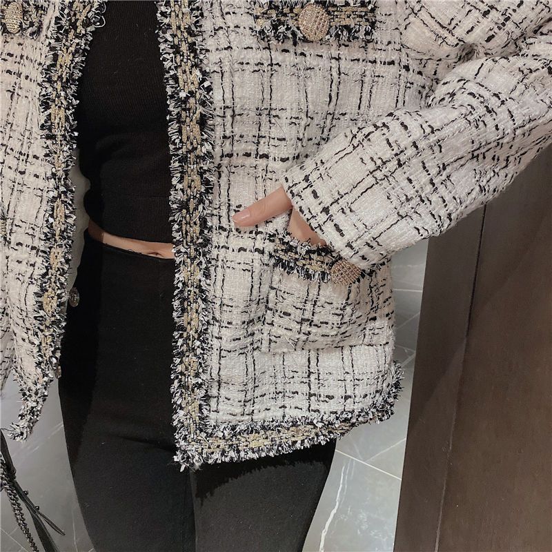 봄과 가을 사교계 프랑스 스타일 샤넬 스타일 긴 소매 웨스턴 스타일 탑 여성의 2025 새로운 라운드 넥 레트로 술 여성용 코트
