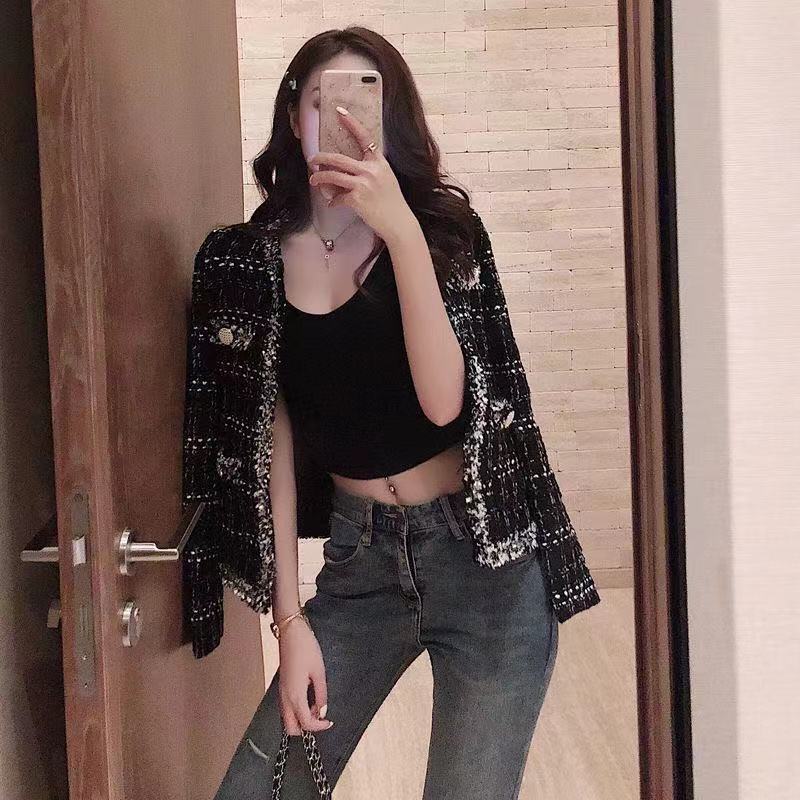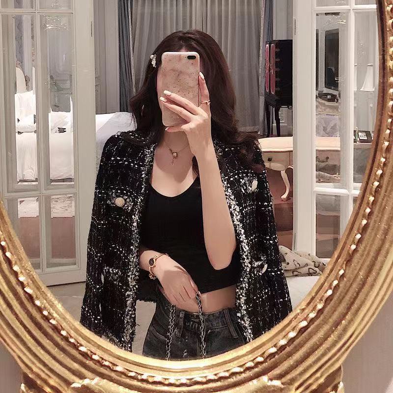 봄과 가을 사교계 프랑스 스타일 샤넬 스타일 긴 소매 웨스턴 스타일 탑 여성의 2025 새로운 라운드 넥 레트로 술 여성용 코트스토어 가기
