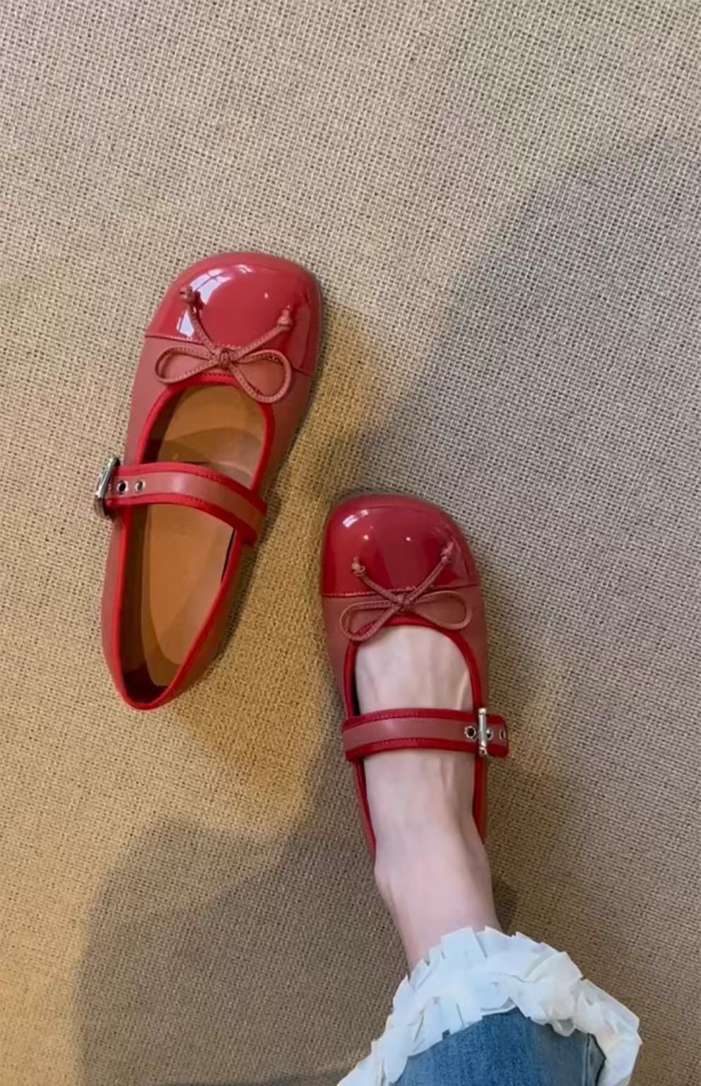 프랑스 빈티지 발레 실버 가죽 신발 여성 플랫 신발 소프트 단독 편안한 레드 싱글 레이어 신발 라운드 발가락 메리 제인 여성 신발스토어 가기