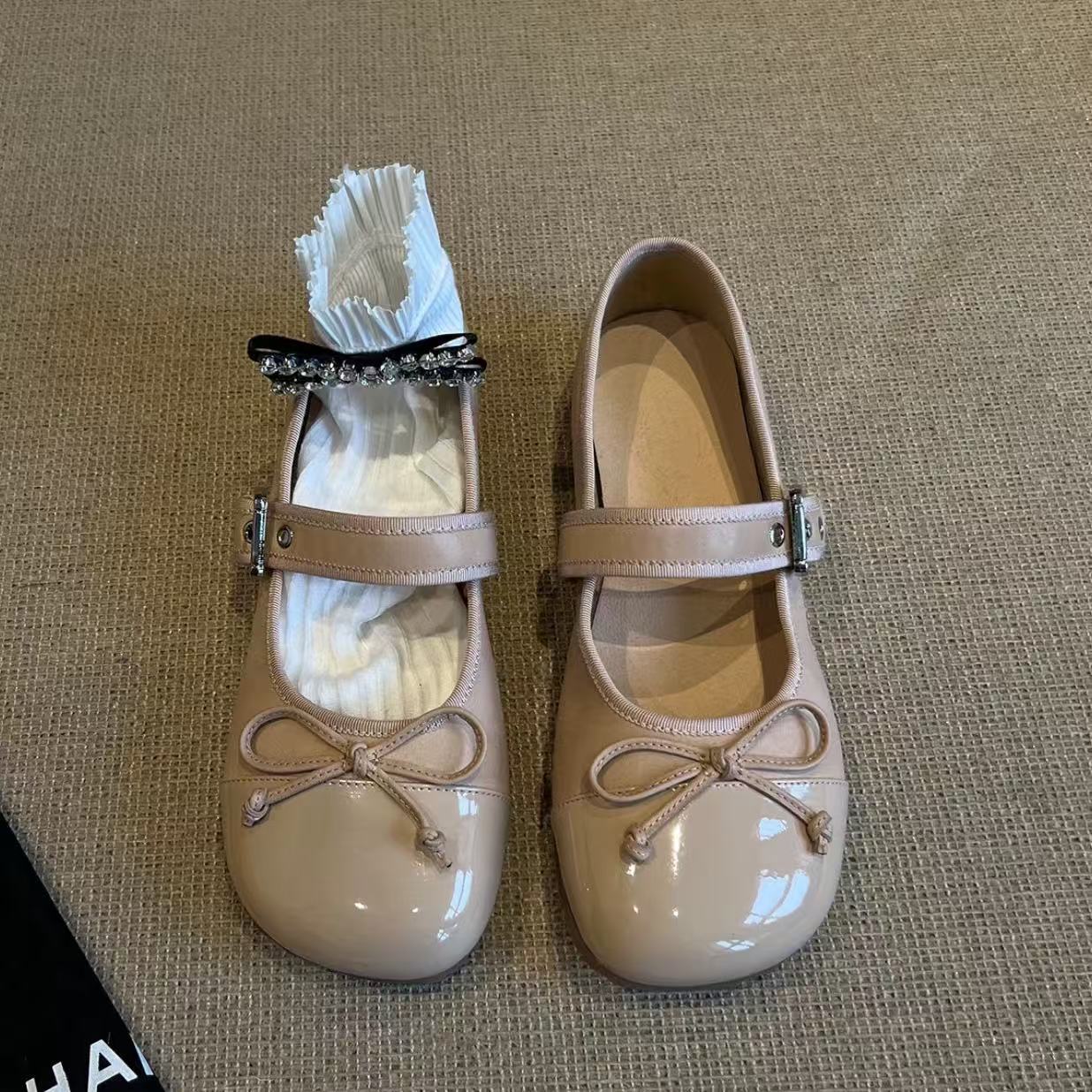프랑스 빈티지 발레 실버 가죽 신발 여성 플랫 신발 소프트 단독 편안한 레드 싱글 레이어 신발 라운드 발가락 메리 제인 여성 신발