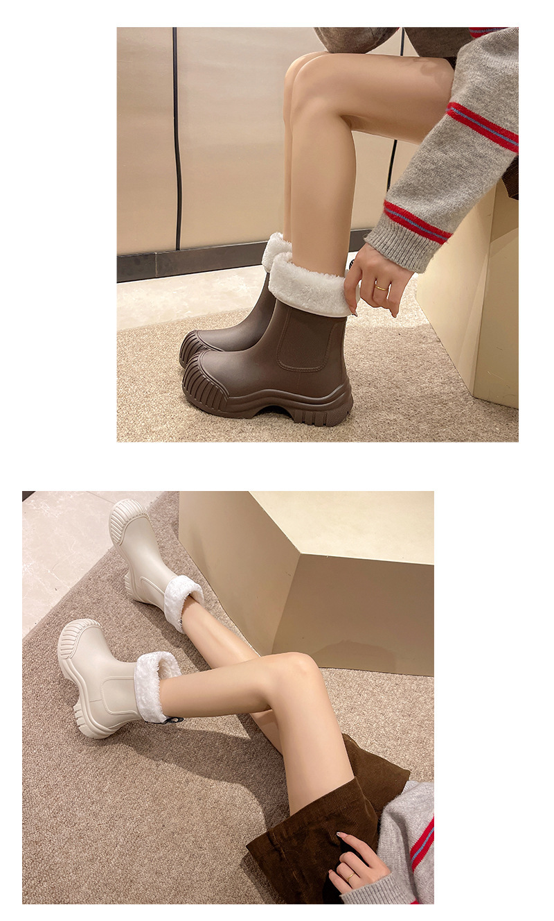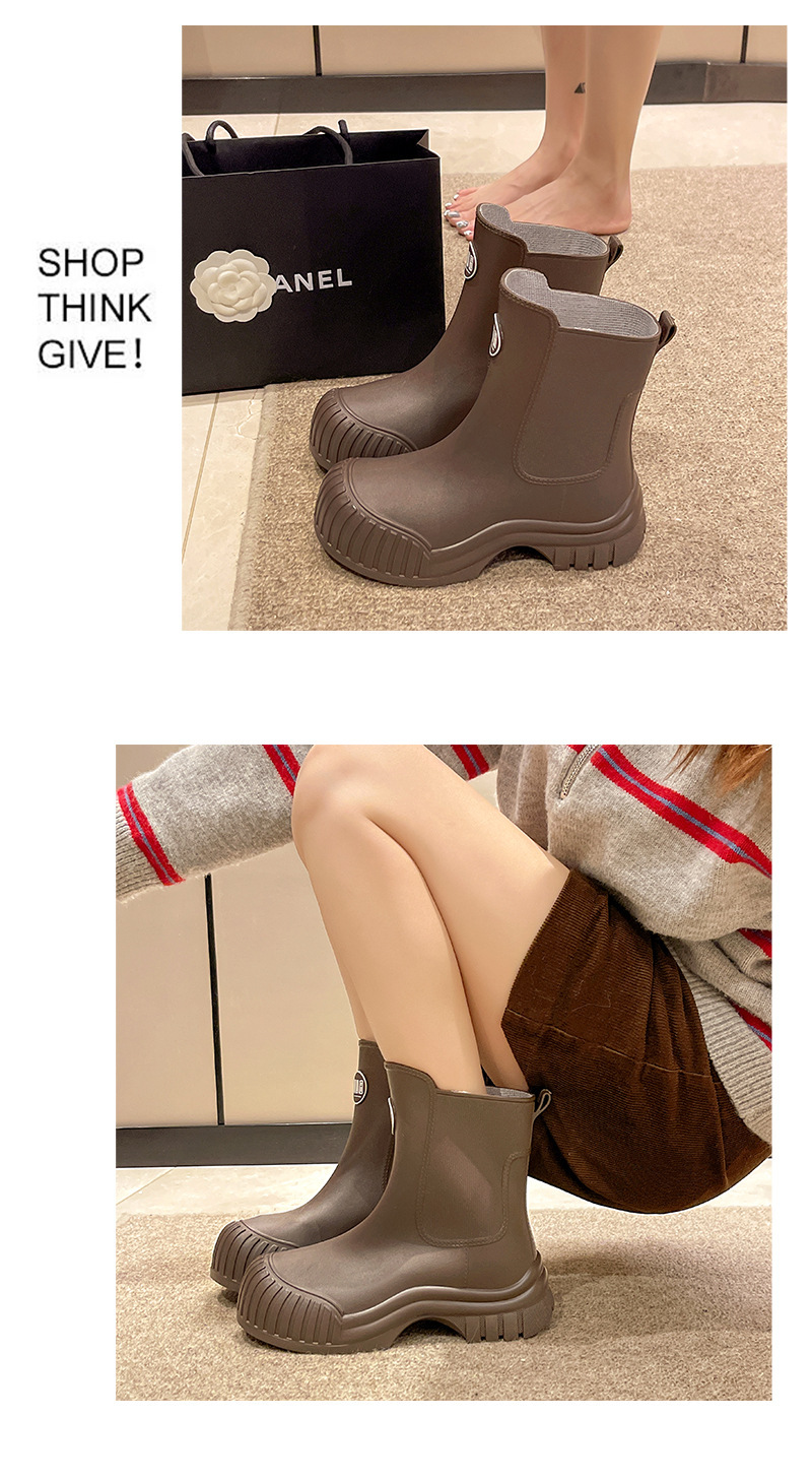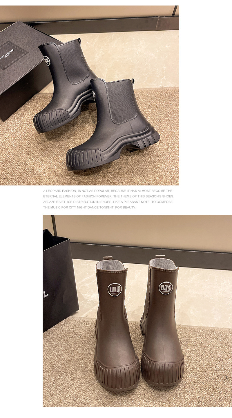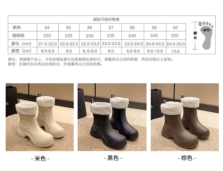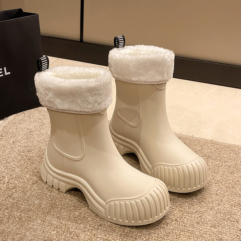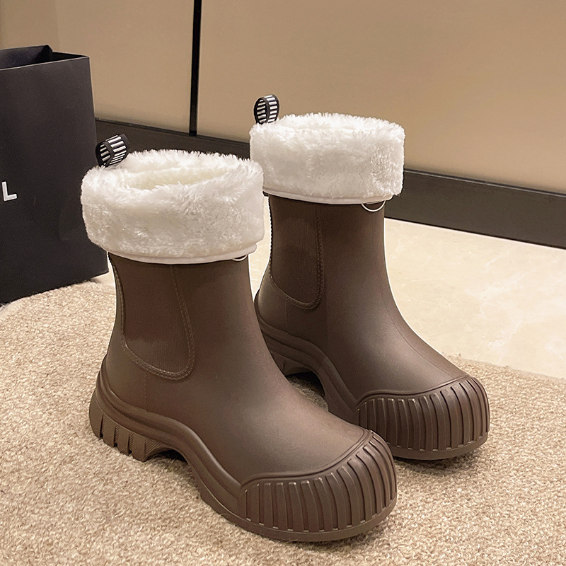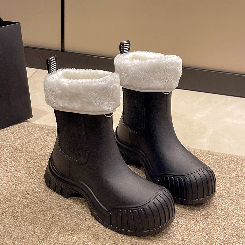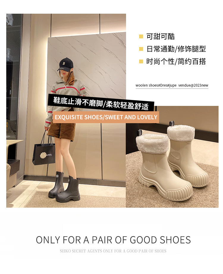 새로운 여성 비 부츠 미드 튜브 장화 젊은 패션 두꺼운 바닥 방수 기모 따뜻한 미끄럼 방지 통근 고무 신발스토어 가기