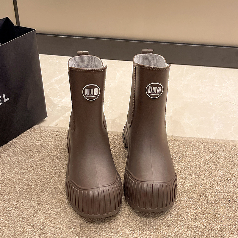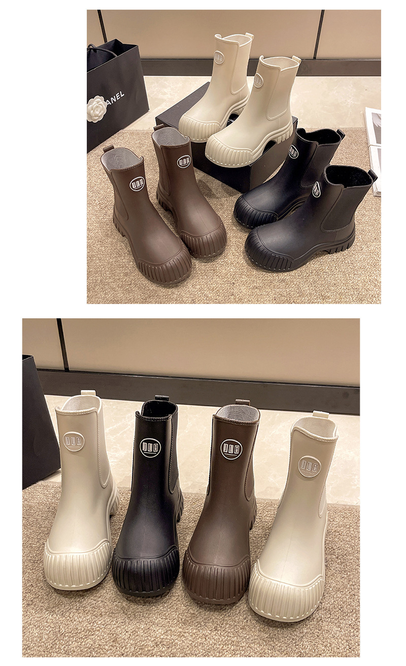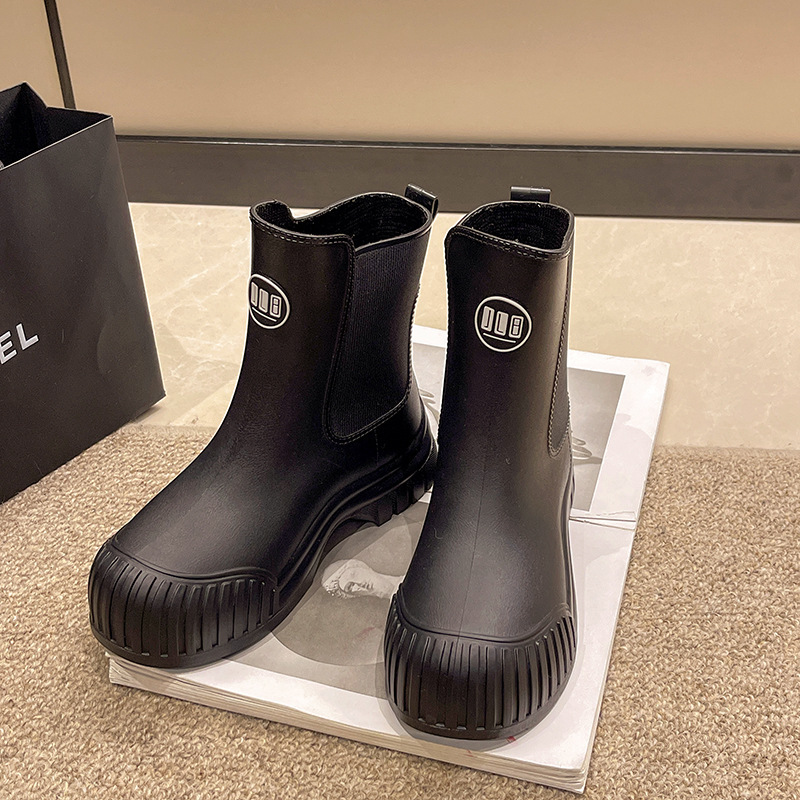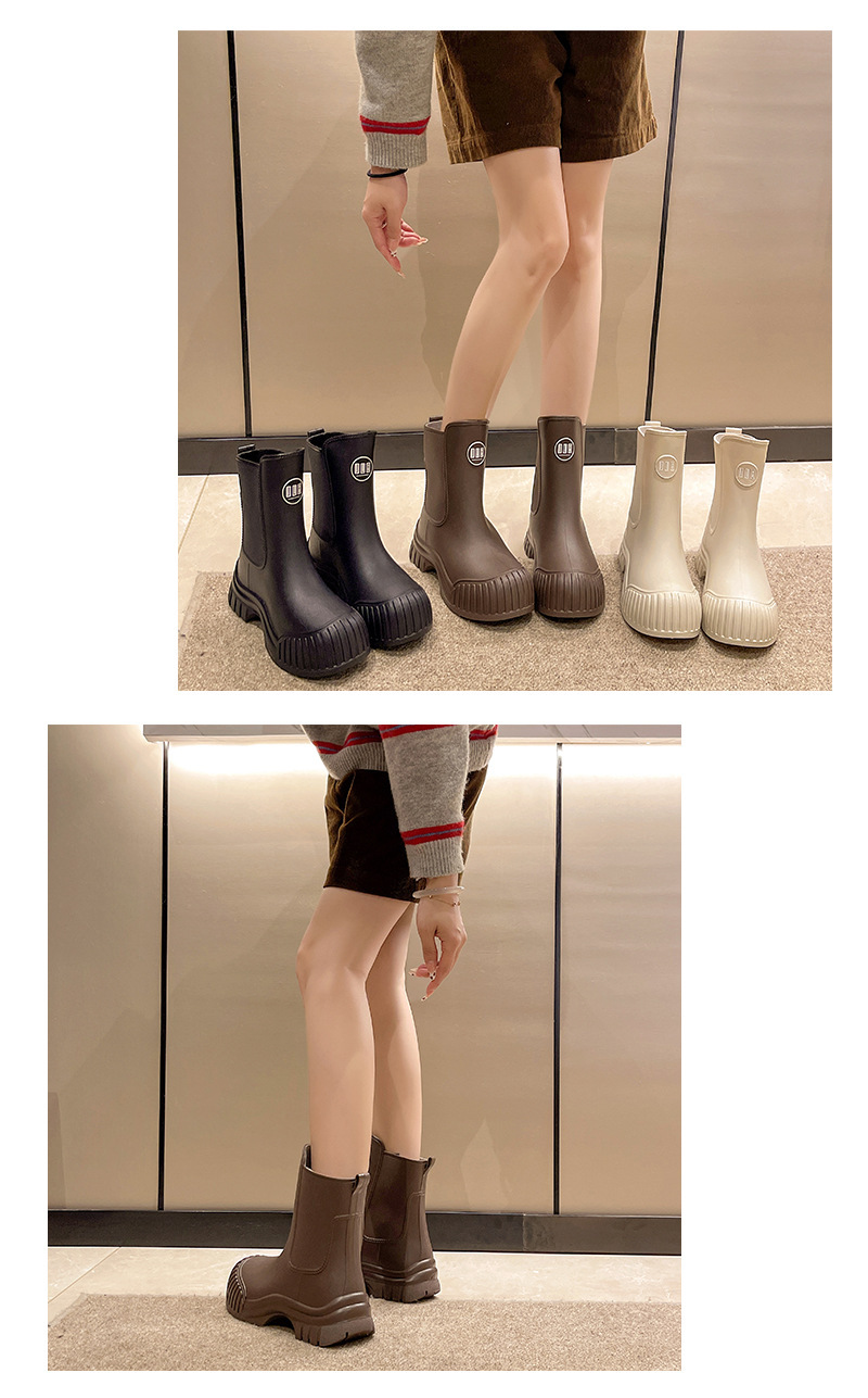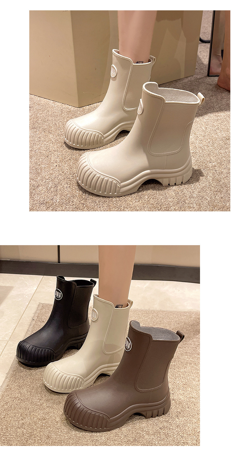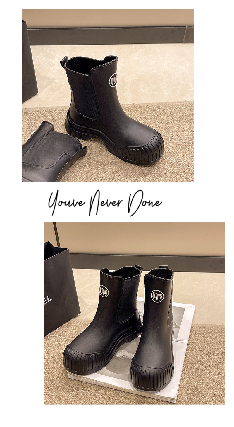 새로운 여성 비 부츠 미드 튜브 장화 젊은 패션 두꺼운 바닥 방수 기모 따뜻한 미끄럼 방지 통근 고무 신발스토어 가기