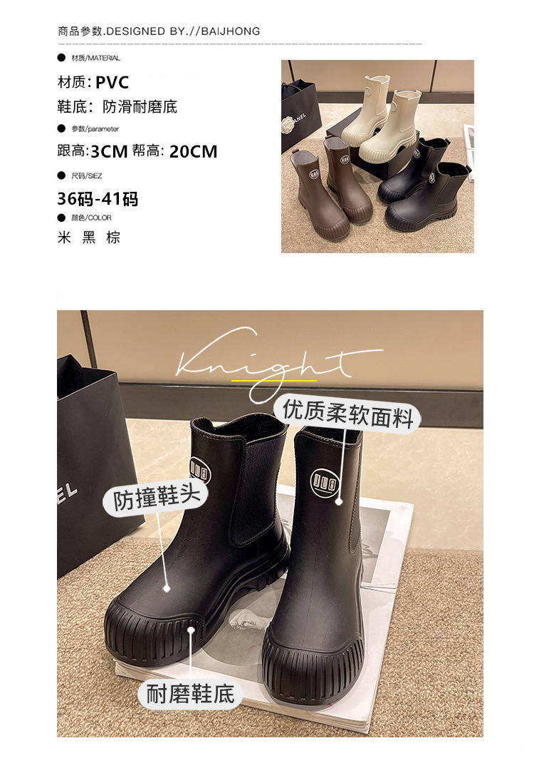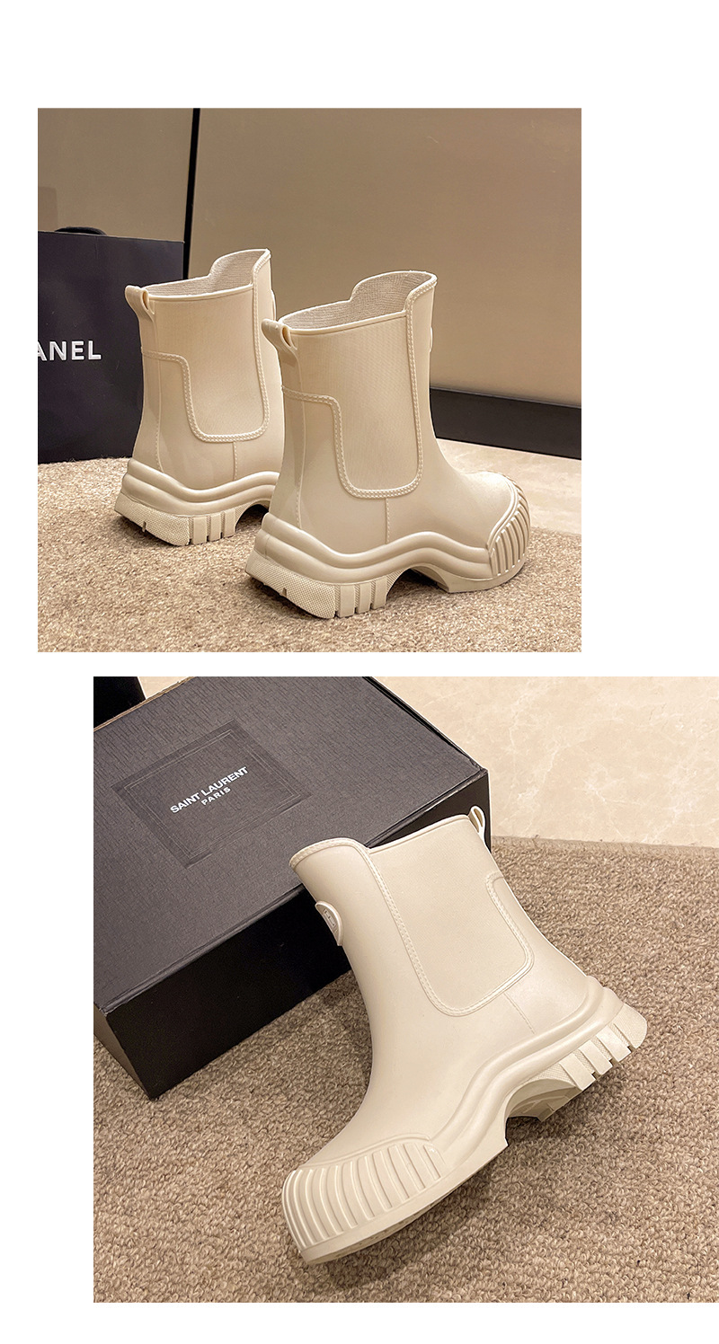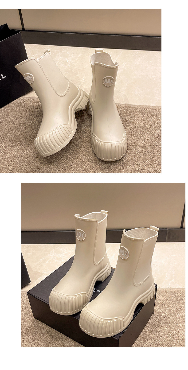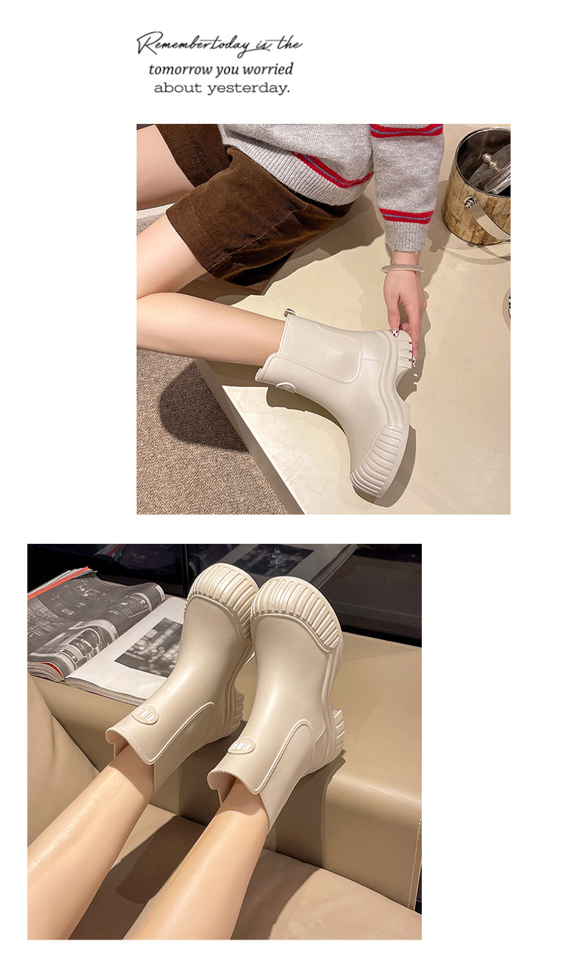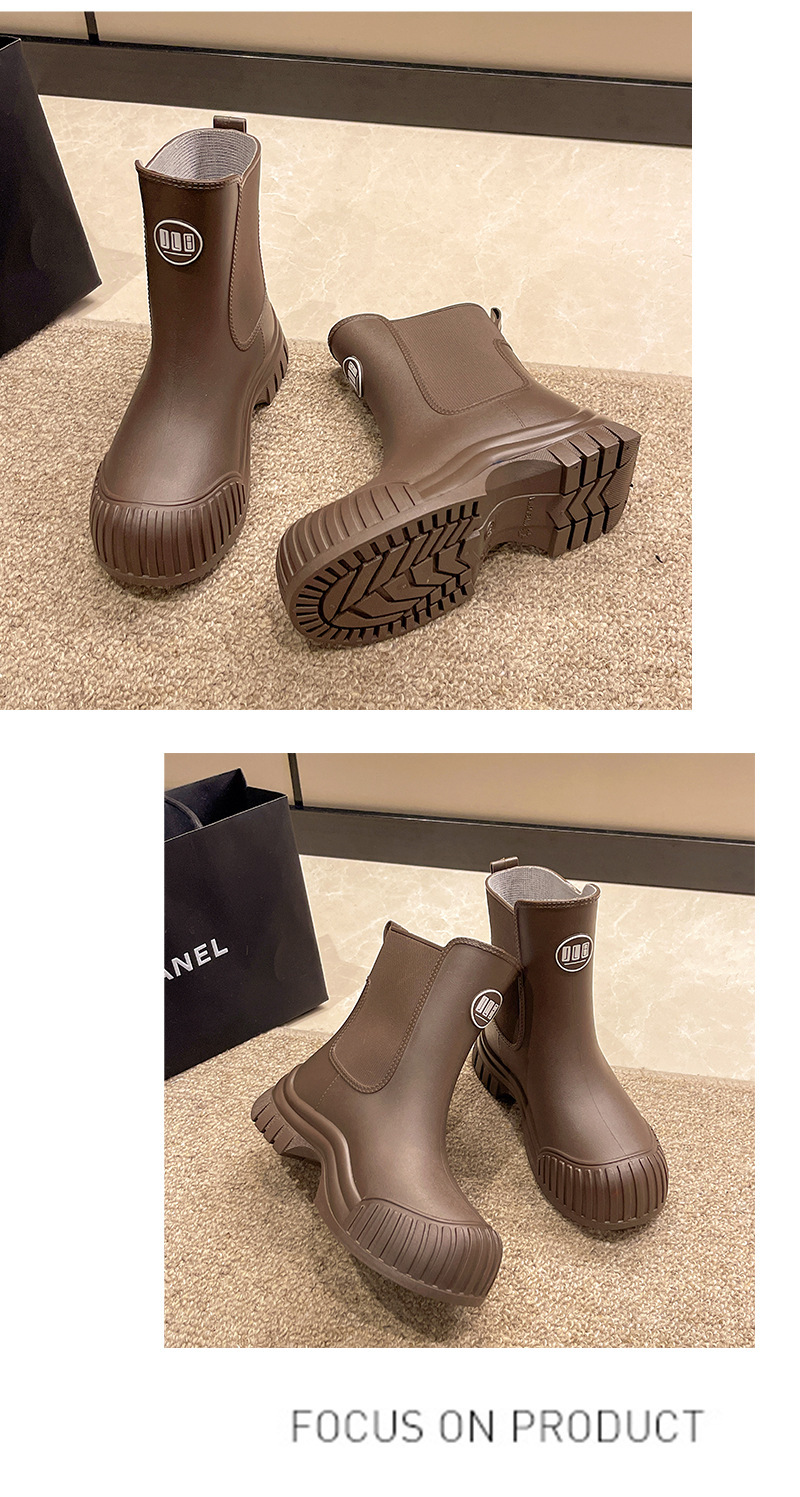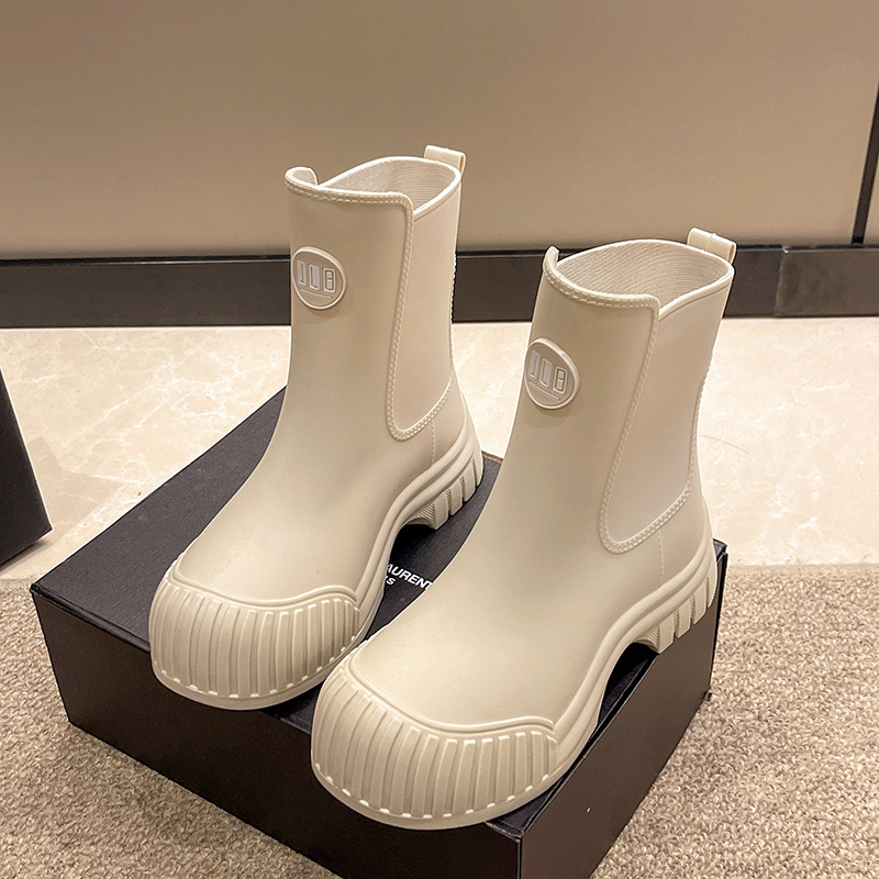 새로운 여성 비 부츠 미드 튜브 장화 젊은 패션 두꺼운 바닥 방수 기모 따뜻한 미끄럼 방지 통근 고무 신발스토어 가기
