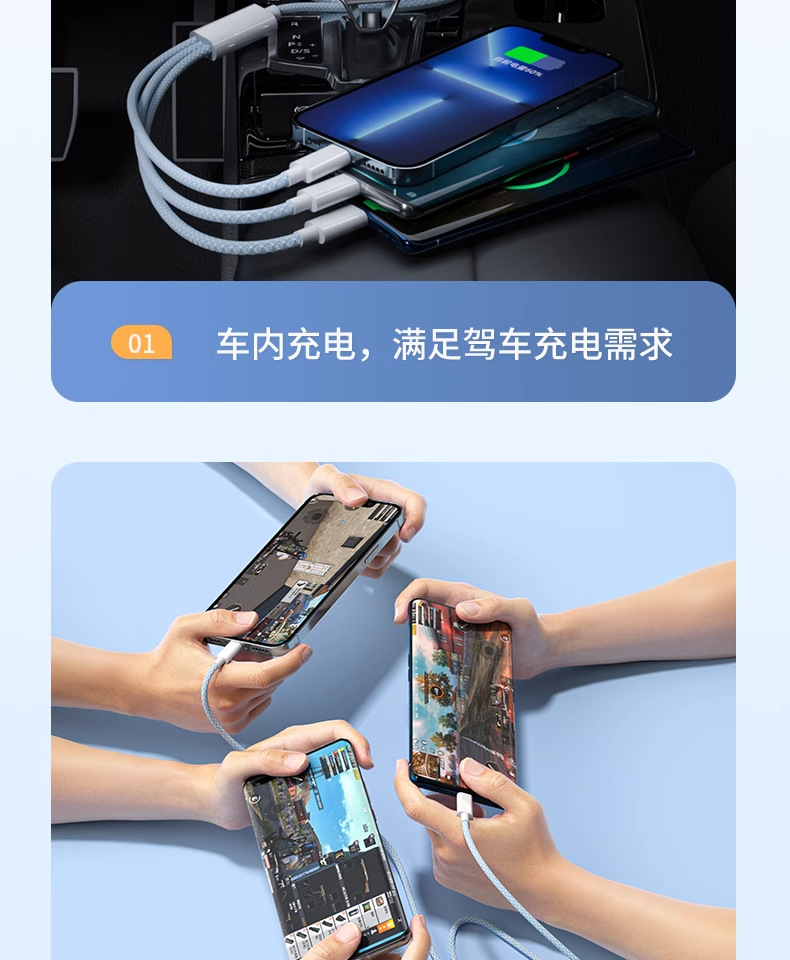 애플 15 화웨이 PD100W 빠른 충전 데이터 라인 더블 헤드 타입 1 대 3 휴대 전화 자동차 충전 라인스토어 가기