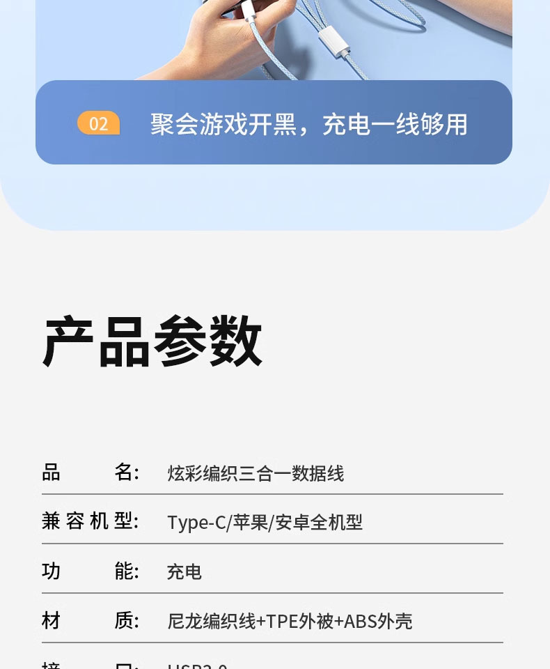 • 스카이블루 [PD 1~3개 데이터 케이블] 초고속 충전