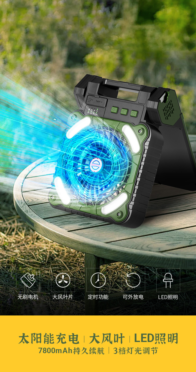 야외 캠핑 팬 태양 다기능 휴대용 캠핑 원단 태양 충전 팬스토어 가기