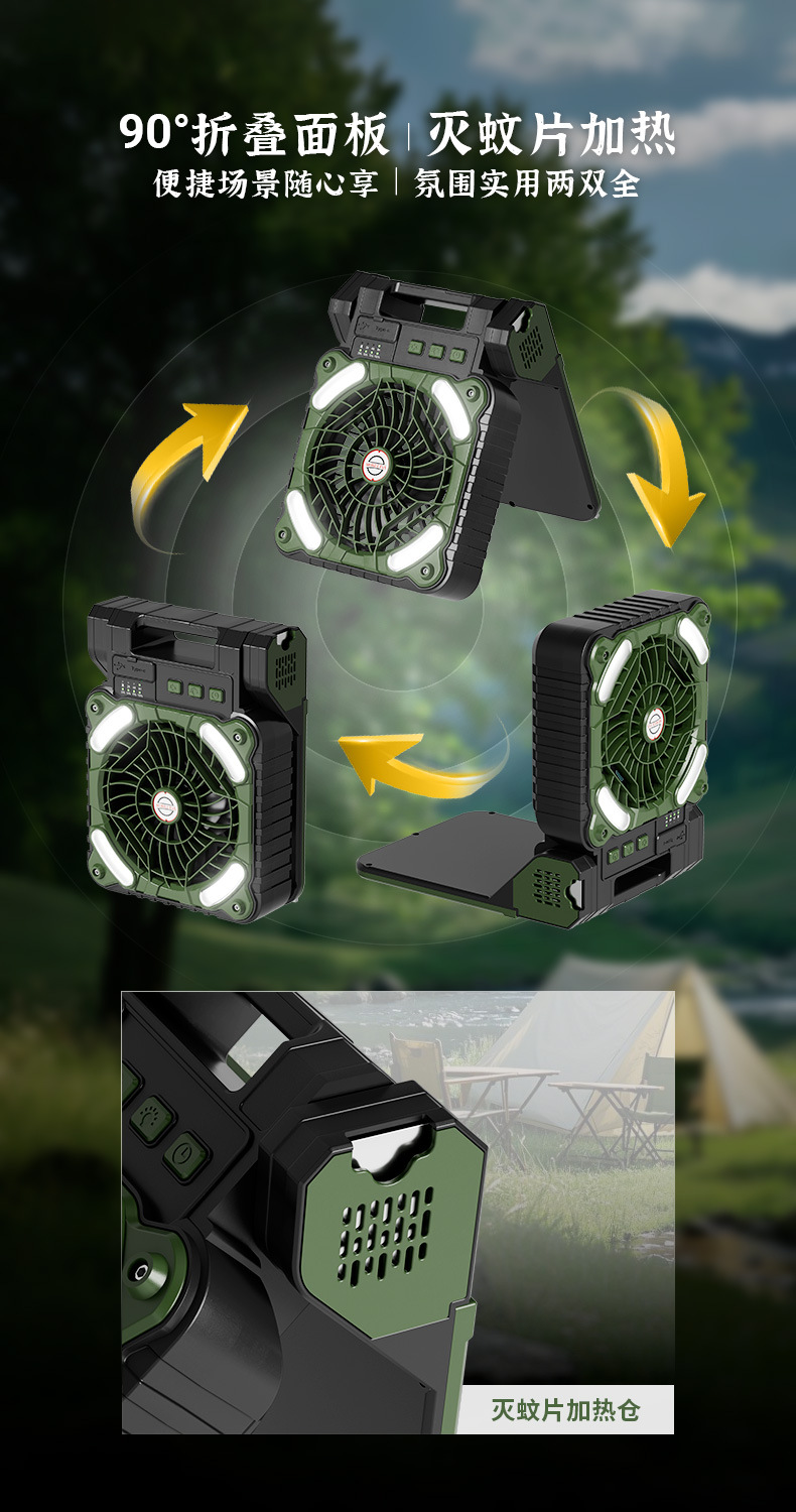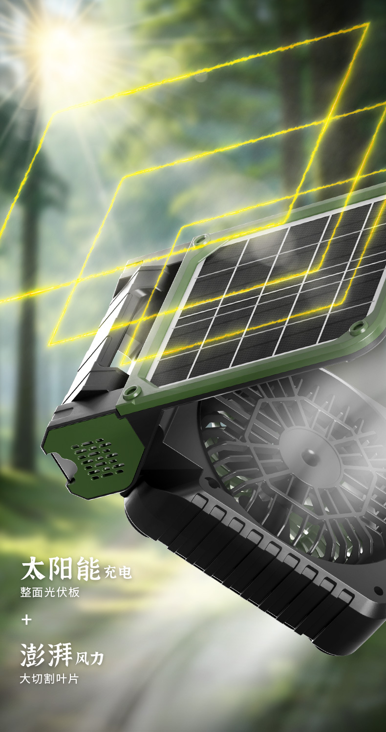 야외 캠핑 팬 태양 다기능 휴대용 캠핑 원단 태양 충전 팬