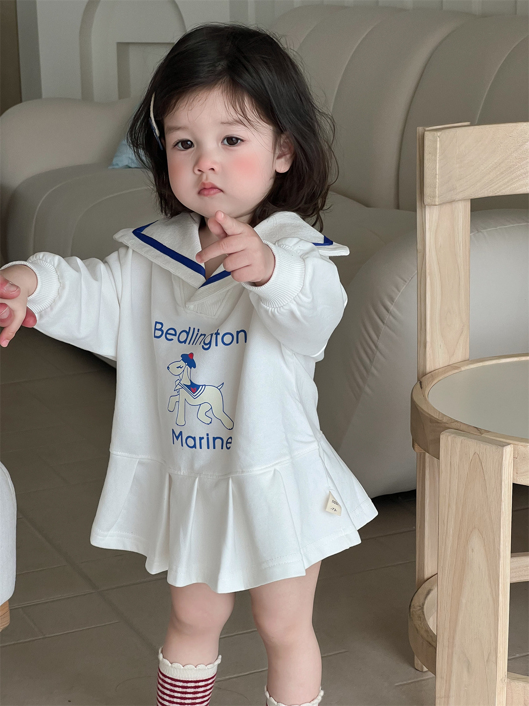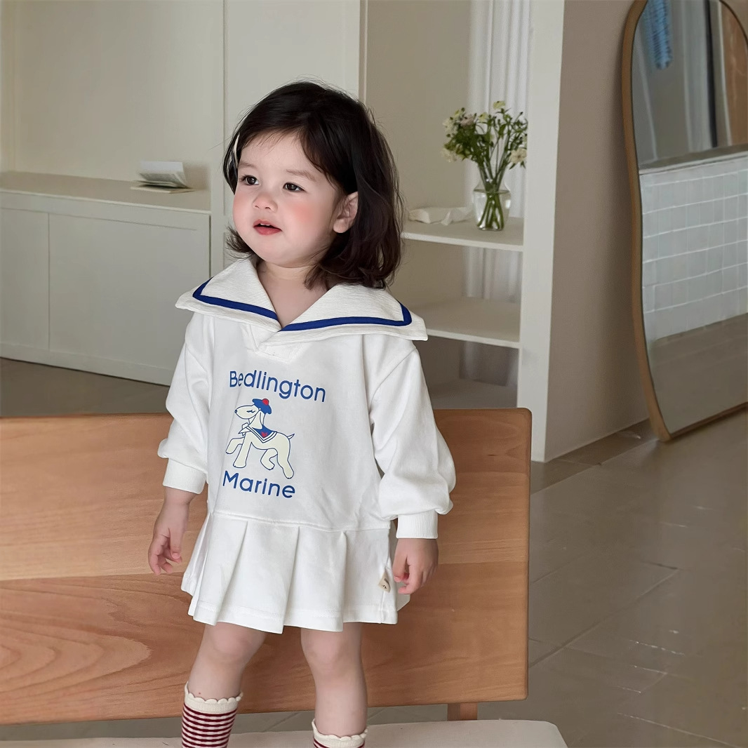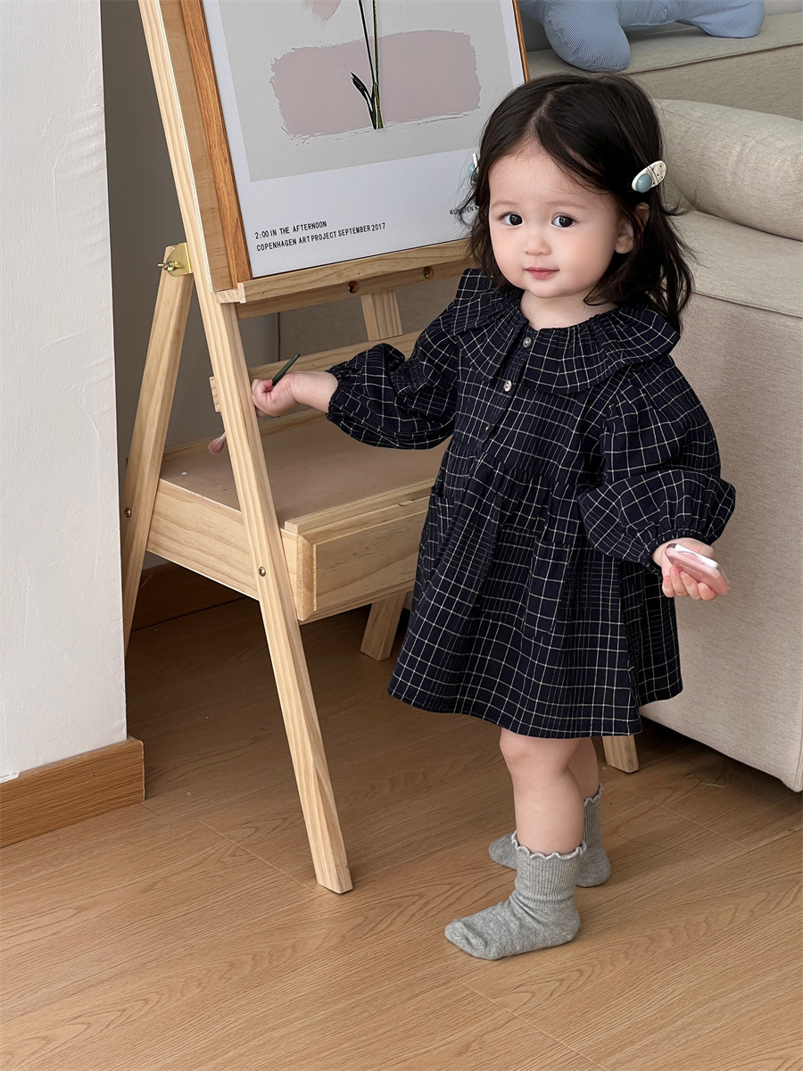 아기 소녀 가을 긴 공주 드레스 2025 새로운 한국 스타일 아동 의류 소녀 옷깃 드레스 가을 옷 어린이스토어 가기