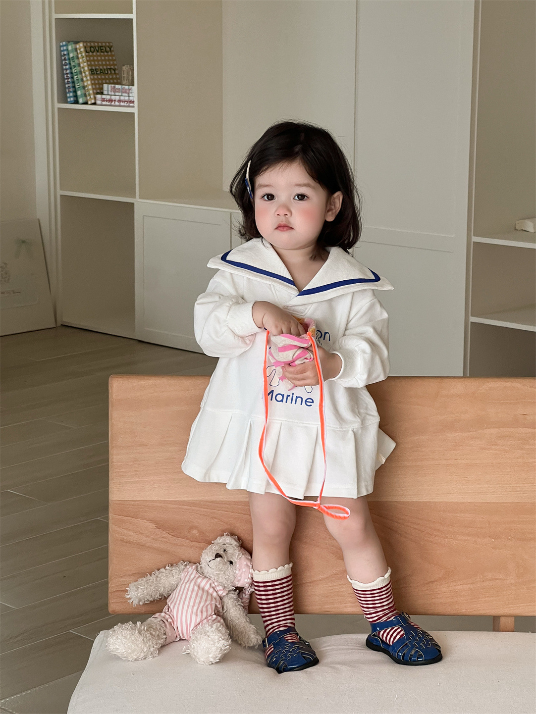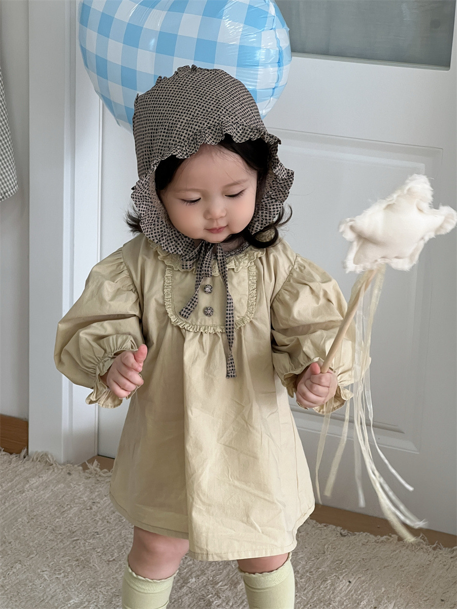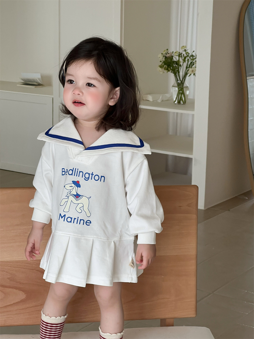 아기 소녀 가을 긴 공주 드레스 2025 새로운 한국 스타일 아동 의류 소녀 옷깃 드레스 가을 옷 어린이스토어 가기