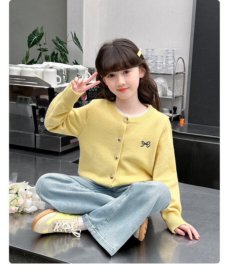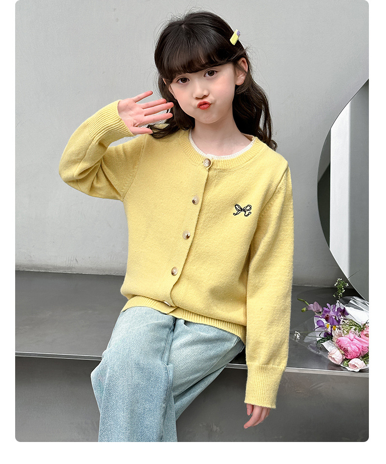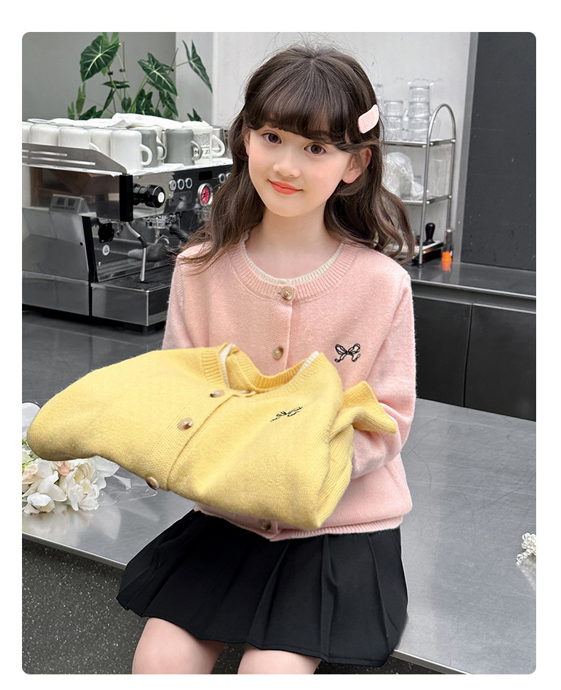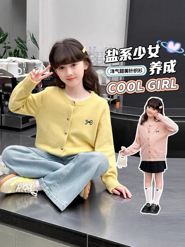소녀 편지 자수 활 가짜 투피스 니트 스웨터 2025 봄과 가을 새로운 도착 유행 어린이 카디건스토어 가기
