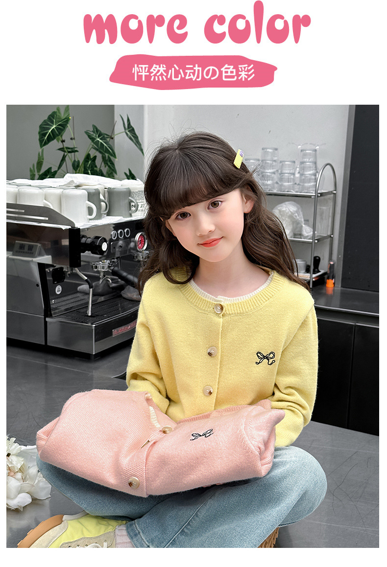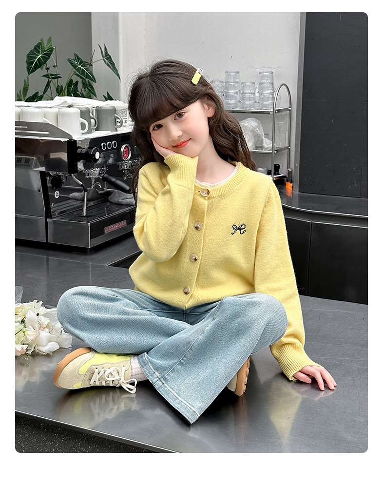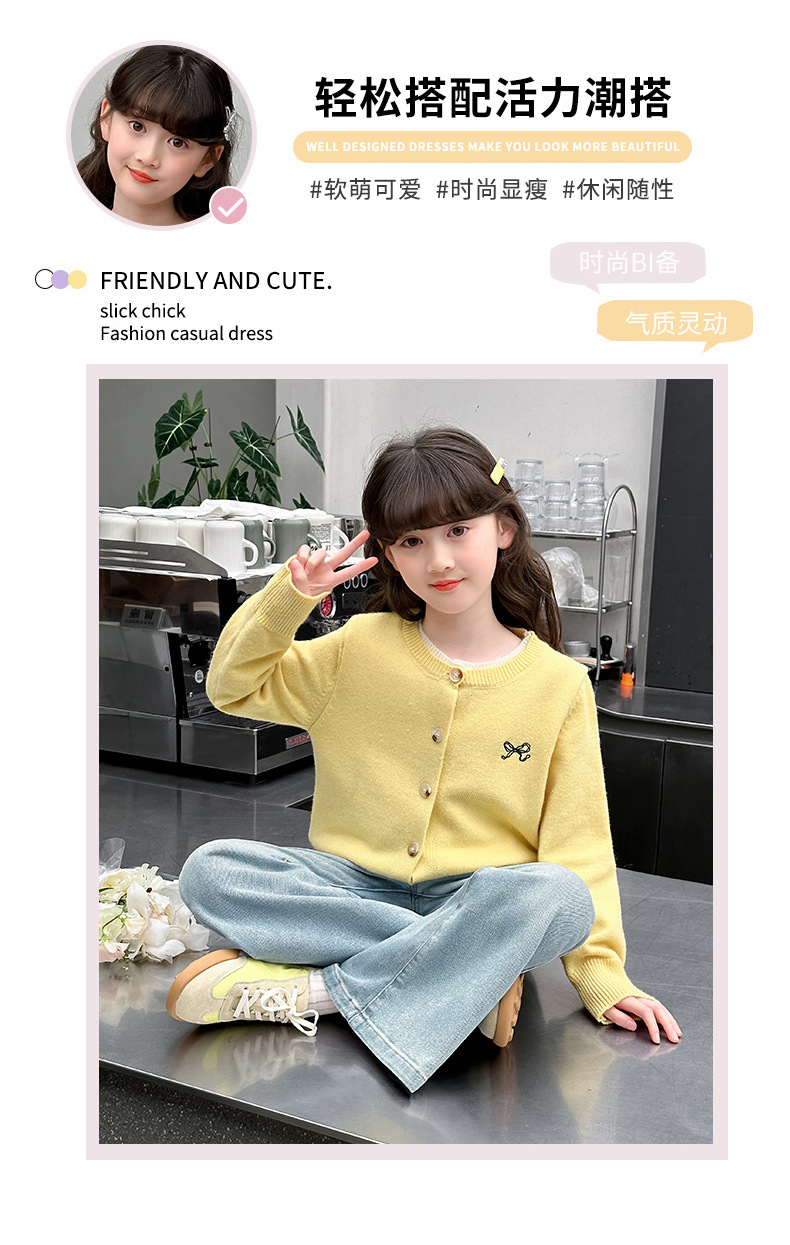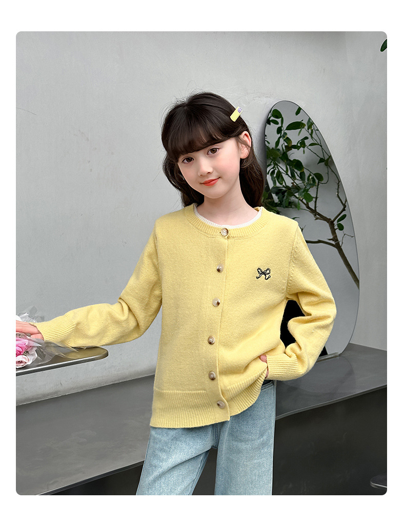 소녀 편지 자수 활 가짜 투피스 니트 스웨터 2025 봄과 가을 새로운 도착 유행 어린이 카디건스토어 가기