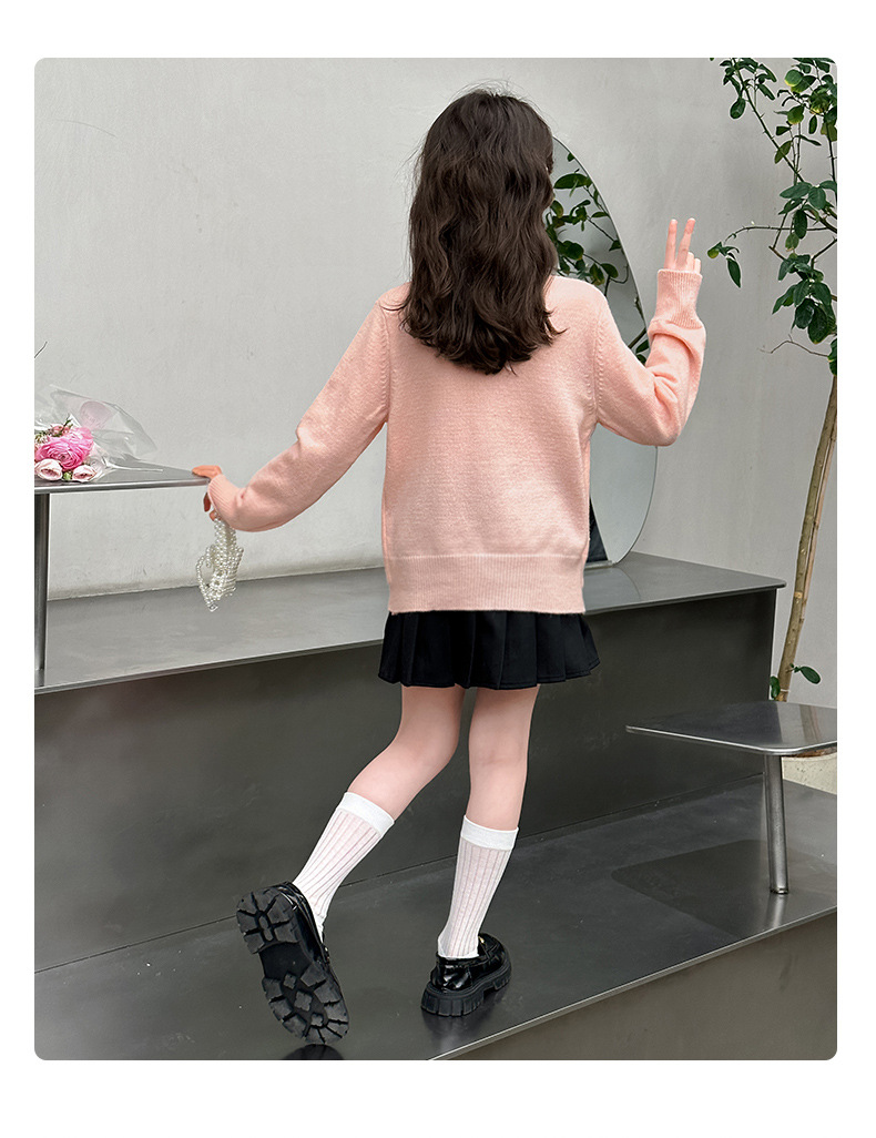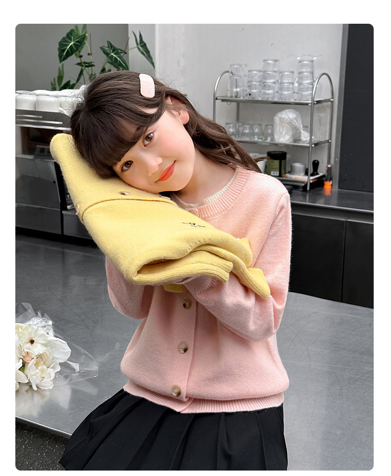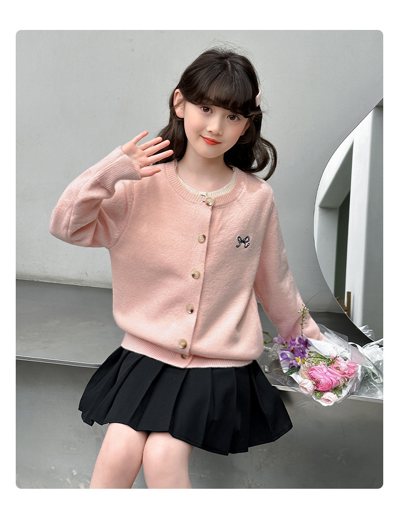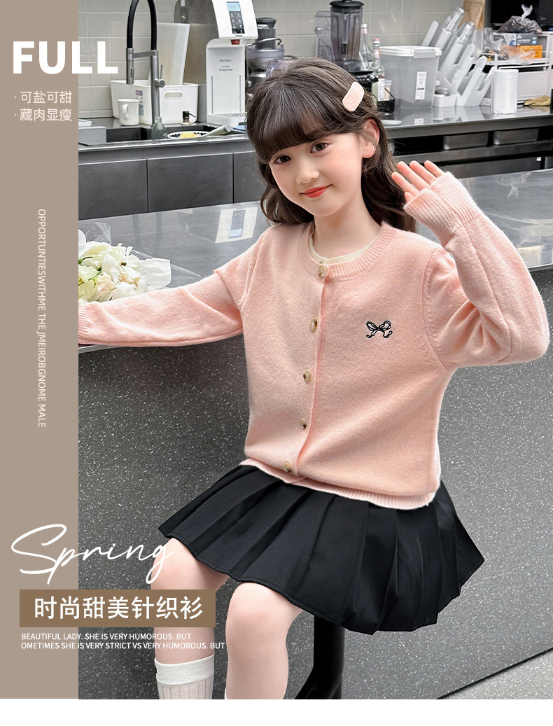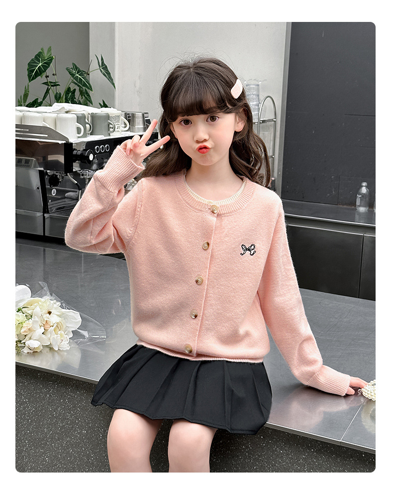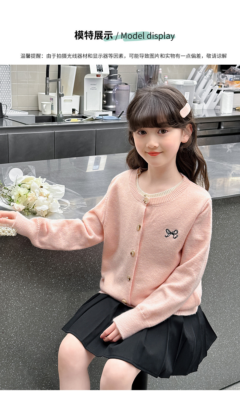소녀 편지 자수 활 가짜 투피스 니트 스웨터 2025 봄과 가을 새로운 도착 유행 어린이 카디건